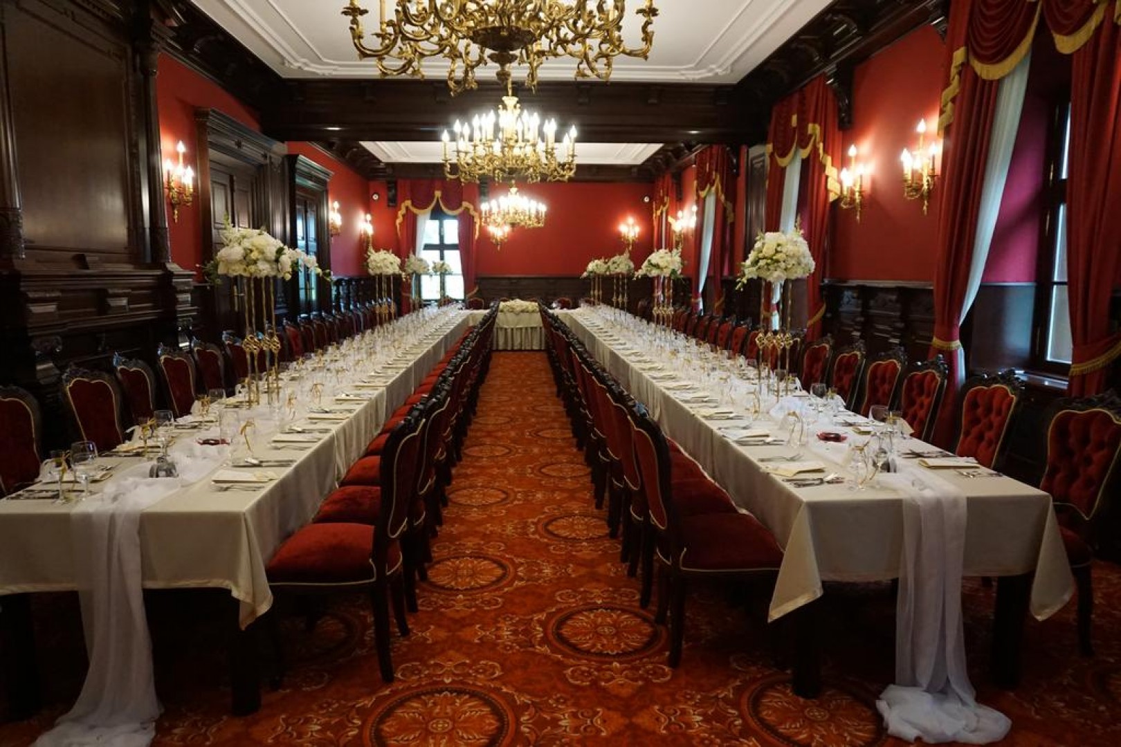 A kastélyszálló különálló díszterme kiváló lehetőséget nyújt esküvők, családi és céges rendezvények megrendezésére.