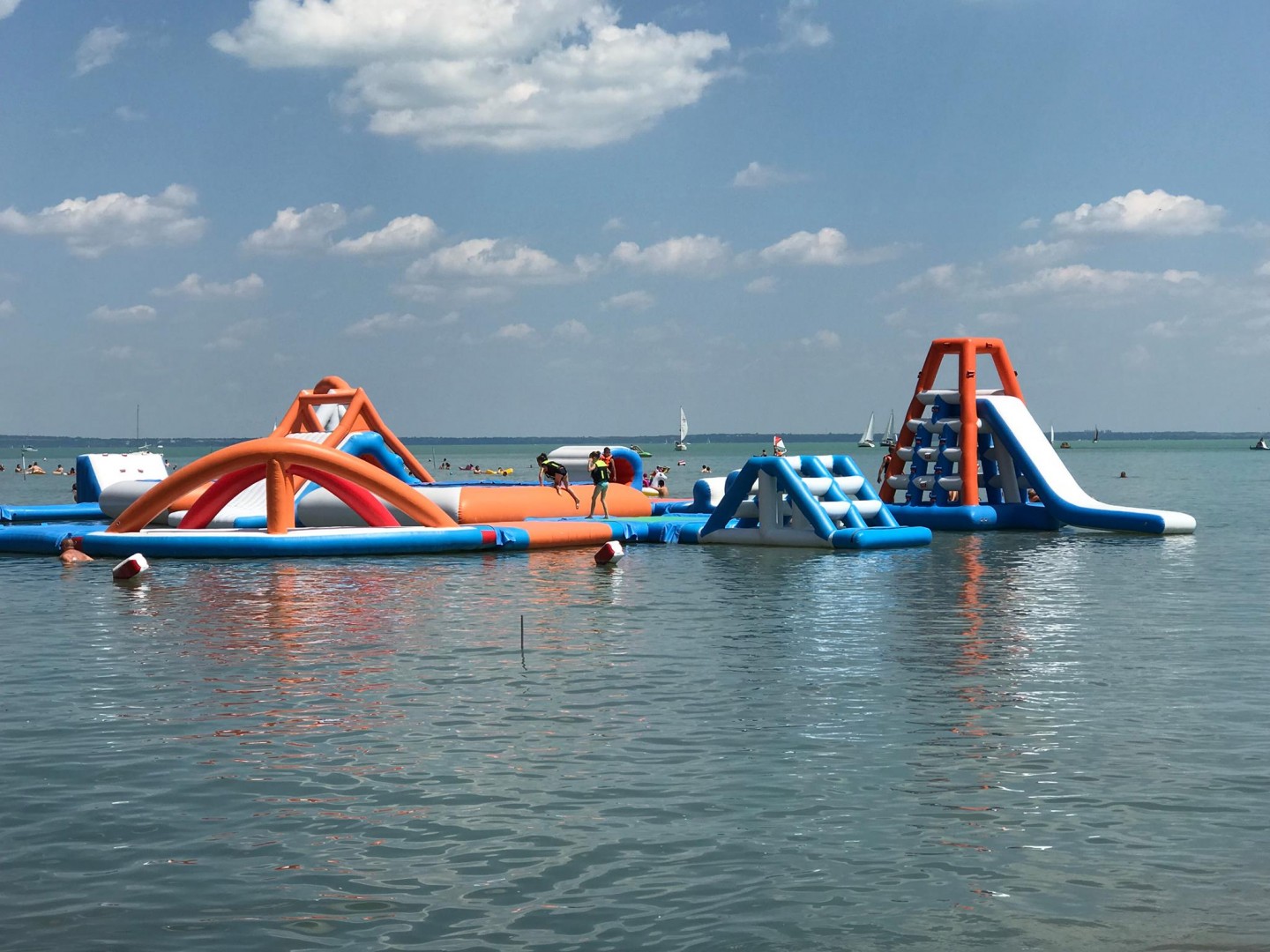 Nagyon hálásak vagyunk azért, hogy a Balaton északi partján az egyik legközkedveltebb strandon, Alsóörsön tehettük vízre ezt a szuper akadálypályát. A pálya elemeit igyekeztünk úgy összeválogatni, hogy a nagy " Csobbanás" semmiképpen se maradjon el. A csúszdák, a trambulinok, a tarzan kötél vagy a kilövő zsák, mind-mind izgalmas összetevői a játéknak. Nemcsak a gyerkőcök, hanem akár az egész család közösen szórakozhat. Csoportok vagy céges csapatépítő tréningek kiváló helyszíne az AquaFunPark. A részletekről érdeklődj a helyszínen vagy e-mailben!