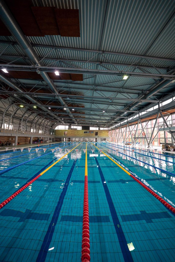 A feszített víztükrű, fedett vízfelületekkel rendelkező uszodánk legfőbb különlegessége a 26-27 °C hőmérsékletű versenymedence méretében keresendő: a 10 pályára felosztott medence hosszúsága 50 méter, szélessége 25 méter, mélysége pedig 2,20 méter, amely paraméterek egyúttal azt is lehetővé teszik, hogy a pályák áthangolásával a versenyek megrendezése előtt, a felkészülési időszakban is zavartalanul edzhessenek egymás mellett a hivatásos és az amatőr sportolók. Ugyancsak egyedinek számít az uszoda korszerű vízfertőtlenítési technikája, hiszen az ózonkezelés a vízkezelésben alkalmazható legerősebb oxidációs és fertőtlenítési eljárás, miközben szagtalan, és az alkalmazásakor nem képződnek nem kívánatos reakciótermékek.