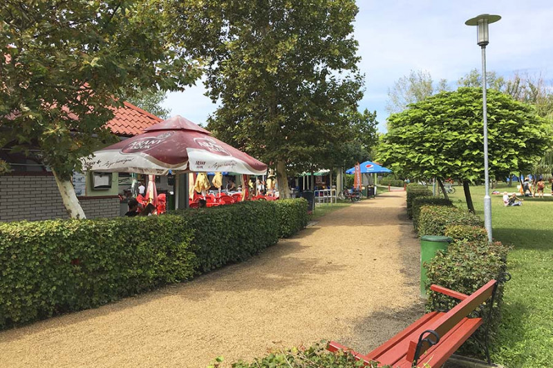 A bejárattól balra különböző mászókákból, hintákból, homokozóból álló, biztonságos, bevizsgált és évente ellenőrzött játszóteret alakítottak ki a gyermekek részére. A büfék a bejárattól a strand jobb oldali részén találhatók széles étel-és italválasztékkal.