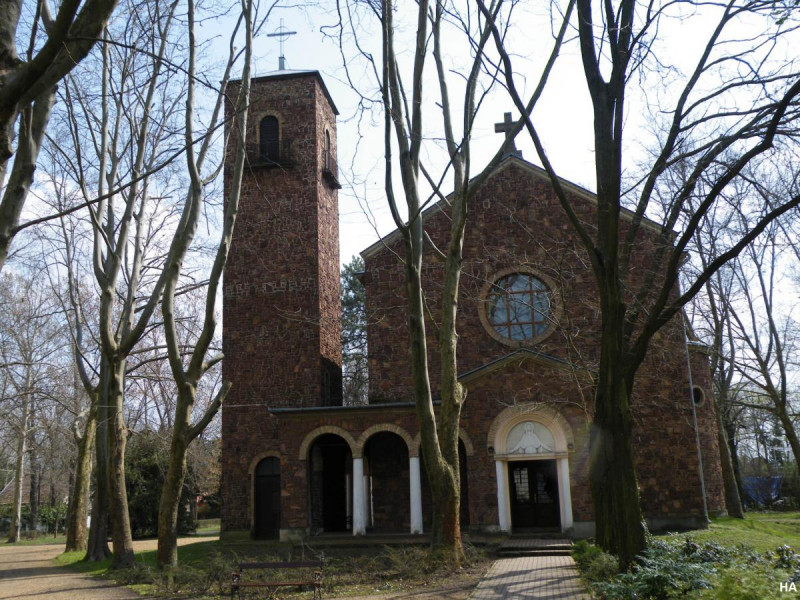 A római katolikus templom a vasútállomás előtti szép parkban áll. A második világháború alatt épült vörös homokkőből, neoromán stílusban. Alapkőletételére 1 941-ben került sor. A gyorsított építkezés következtében már 1943-ban, az üres falak között tábori misét tartottak. Szentélyének ablakait Szappanyos Béla zamárdi születésű szobrászművész tervei alapján Kondor Béla készítette, és az ő alkotása az oltár feletti feszület is. Kovácsolt vas oltára Farkas Ferenc remeke. A templomban nyaranta hangversenyeket rendeznek.