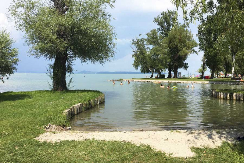 A központi strandon található egy sekély vizű, csodálatos természetes öböl, mely azért különleges, mert megmaradt olyan természetes, homokos partszakaszként, amely a Balaton déli partján lévő strandokon csak nagyon kevés helyen található.