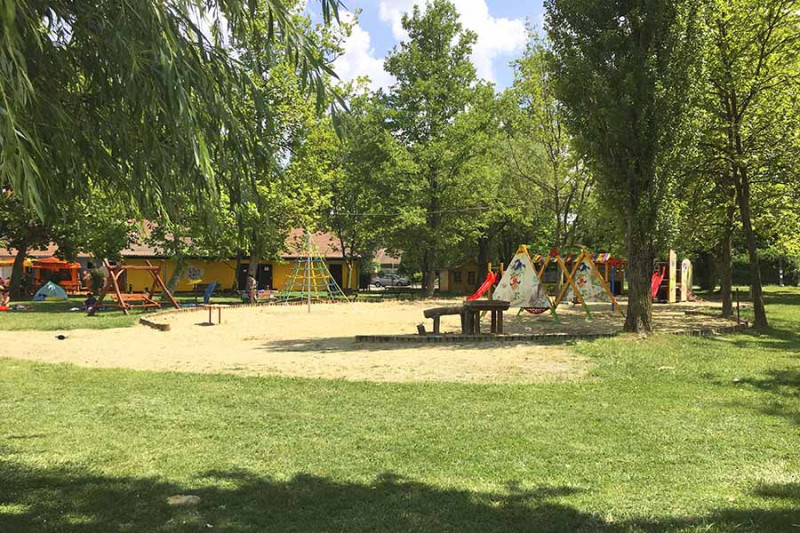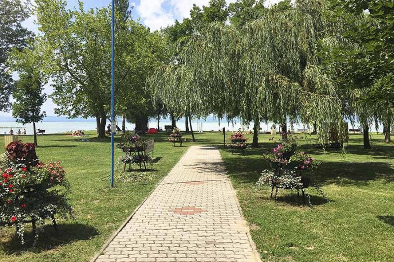 A partra, a kifutó hullámtérre szintén selymes balatoni homok került, melyben kedvükre „építkezhetnek” a kisgyermekek. A fák gyökereit a kimosás elleni védelem érdekében fenyőcölöpökkel vették körül.
