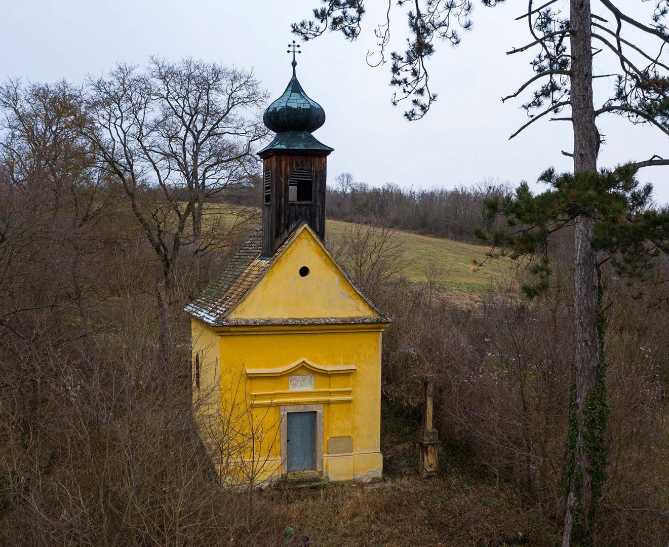 Megyefalvi Horváth Dániel emeltette az első szenthelyet , a kápolnát 1739-ben nejével , Pávicz Katalinnal az 1786-ban épült Petrovszky kastély feletti dombon . Ez a hely régebben szőlőhegy volt. A kápolna bizánci stílusú kupolás fatornyával és éles homlokzatával uralja az alatta elterülő síkot . Ajtaja felett felirat áll az építtetőkről . Később oldalára került Jeszenszky Antal sírtáblája is . Alatta tágas üreg , a családi sírbolt helye . A sírbolt bejáratát Jeszenszky Ferenc kegyúr-özvegye látta el díszes vasrácsos kapuval .