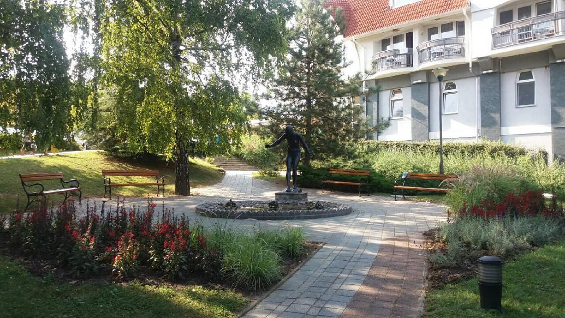 Zalakaroson a Dísz tér az egyik leglátványosabb központi tér. Számos rendezvénynek és koncertnek ad otthont, de nem csak ilyenkor érdemes ellátogatni ide. Remek hely a pihenésre, feltöltődésre, ha szép és igényes helyen szeretnénk ezt megtenni. Kiépített utakon tehetünk egy kellemes sétát vagy ücsöröghetünk egy padon a csobogót nézve. A teret a Vízbe lépő című szobor díszíti, melyet 1999-ben készített Kisfaludy Strobl Zsigmond.