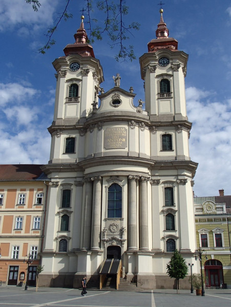 A barokk egyházi építészet egyik legszebb épületének számít a Páduai Szent-Antal templom. Legtöbben csak Minorita templomnak hívják. 1771-ben történt meg a felszentelés Szent- Antal tiszteletére. Tervezője Kilian Ignaz Dientzenhofer volt, aki a bécsi hercegérsek építésze volt. Az építés hivatalos évszáma ugyan 1771, de a templombelsőt 1792-ig csinosítgatták a kor művészei is. A főbejáratot korintoszi oszloppárok fogják közre. A kapu zárókövén az „Istenért semmi sem elegendő” felirat ékeskedik. Ez az építmény kicsit kilóg a magyarországi barokk templomok sorából, mivel homlokzata a két torony között nem egyenes, hanem enyhe ívelésű félkört ír le. A főoltár Szent Antal vízióját mutatja meg nekünk: Szűz Mária a felhőkön lebegve, karján a kis Jézus. A mennyezeten elhelyezett freskókra szegezve szemünket, bepillantást nyerhetünk Szent Antal mindennapos életébe. A templom keleti oldalán megtalálható a Szent Hedvig Középiskolai Leánykollégium, a nyugati oldalon pedig a Városháza. A Dobó teret az 1907-ben felállított Dobó István szobor teszi még pompásabbá.