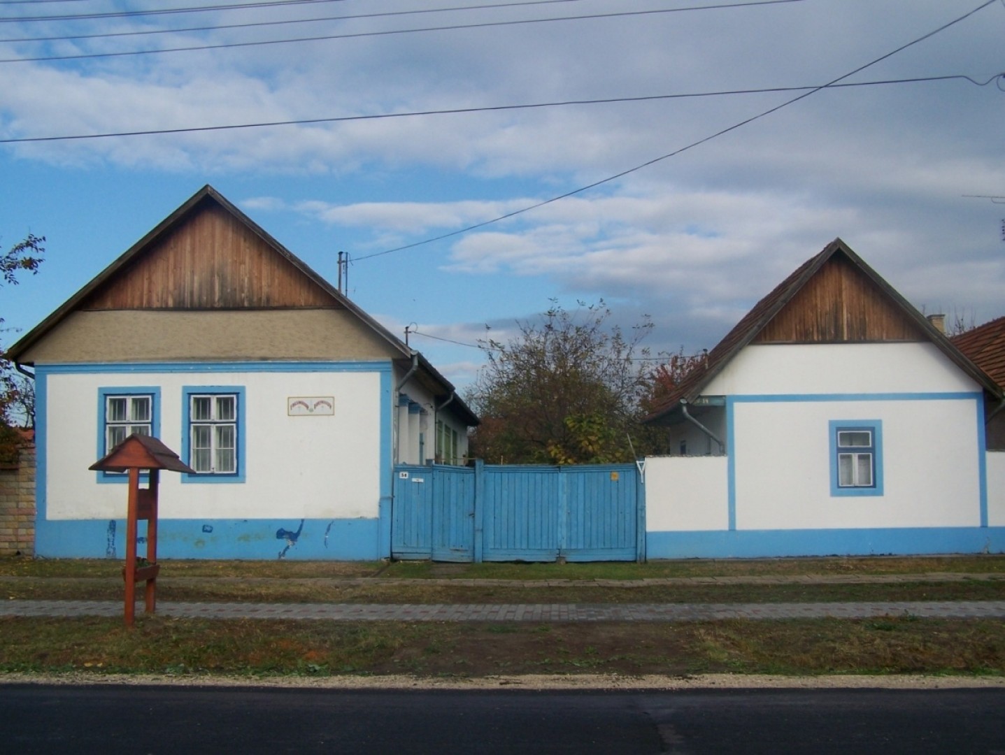 Az épületek tégla alapúak, vályog falúak. A nyeregtetők székes szerkezetűek, héjazatuk cserép. A lakóház oromzatának első kétharmada deszkázott, alsó egyharmada falazott, fröcskölt vakolattal. A homlokzat és az ablakok falsávokkal vannak keretezve, melyből a felső sáv párkányszerűen előreugrik. Az udvar felüli részen húzódik végig a féloszlopos, mellvédes gang, amely a korabeli házakon gyakran ajtóval nyílt az utcára. Ezen a házon ezt az ajtót befalazták vagy meg sem épült. A gangot a padlásfeljáró ajtaja zárja le. Az épületek falának színe sárga, míg a lábazat világoskékre mázolt. Világoskékre festették még a homlokzat és az ablakok vakolatkeretét, az oszlopfőket, a nyílászárók nagy részét valamint a mellvéd deszkáját. Az udvart az utca felé deszkából készült kis- és nagykapu, valamint vakolt vályogkerítés zárja le.