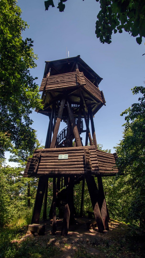 A 13 m magas fakilátóból pompás, lenyűgöző panoráma nyílik a Hegyközre és a medencét körülölelő hegyekre. Északnyugat felé mint egy terepasztalon sorakoznak a falvak, fölöttük koronaként ül a füzéri vár, mögötte a Nagy-Milic csoportja. Nyugat felé Abaújba látunk át, a Cserehát északi dombhátain túl a messzeségben a Szlovák-karszt magaslatai kéklenek. Északkeletre a Ronyva völgyének Szlovákiába eső falvai látszanak.