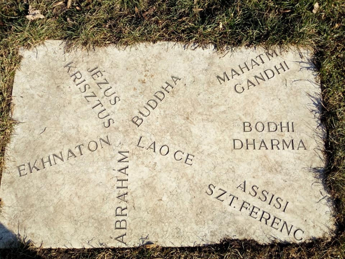 Egy kis érdekesség, különlegesség, hogy itt Jézus Krisztus és Buddha is találkozik egymással, azaz ahogyan a talpazaton is olvasható „Egymás jobb megértéséért”