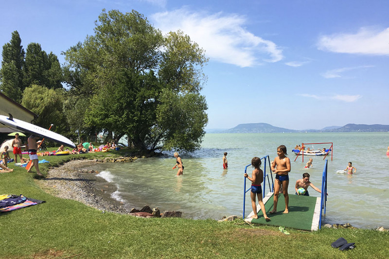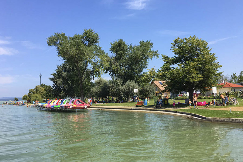 A balatonboglári Fiumei strand a város legcsaládiasabb hangulatú strandja, ahol kisgyermekek is bátran beletotyoghatnak a magyar tengerben a Balatonba.