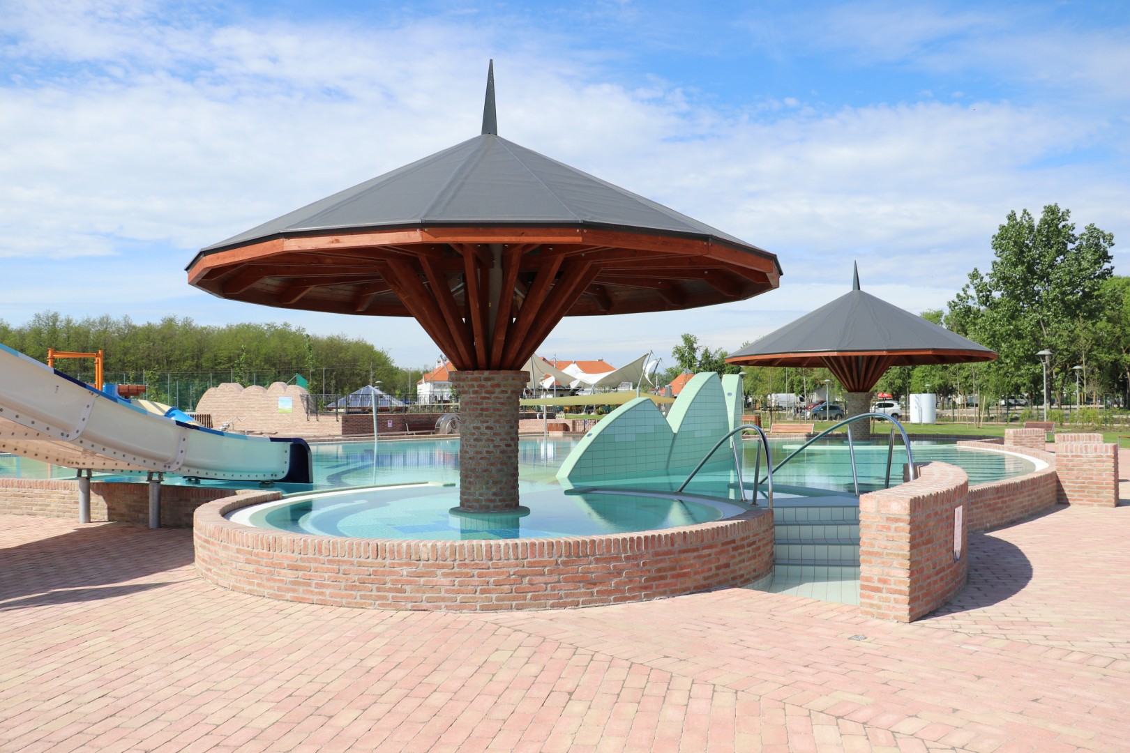 Nyitott gyógyfürdő és kemping: A majdnem 7000 négyzetméteres nyitott termál- és strandfürdő magában foglalja a szabadtéri medencéket, vízi és hagyományos játszóparkot, valamint a bejárati épületet, a sportpályákat, valamint az üzemeltetés számára szükséges épületeket. A nyitott gyógyfürdő és kemping - a sportpályák széles választéka mellett - színes időtöltést biztosít ugyancsak minden korosztálynak. Található itt csúszdás gyermekmedence, tágas vizesjátszótér, de ugyanakkor senior játszótér is, Kneipp taposó, és két különböző hőmérsékletű gyógyvizes ülőmedence számos élményelemmel.