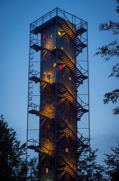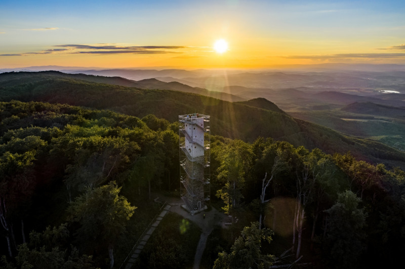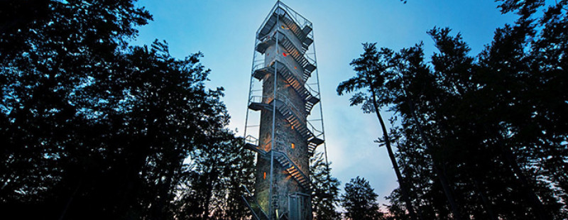 Az ország egyik legmagasabban álló kilátója , amely egyedülálló, 360°-os panorámát nyújt. A csaknem 1000 méteres magasságban lévő tetőterasz megközelítése egy új, kettős közlekedési rendszeren keresztül lehetséges: a tervezők a megnyújtott belső mag köré csavartak két, egymással párhuzamosan haladó lépcsőt, szigorúan elválasztva ezzel a fel- és lejutást.
