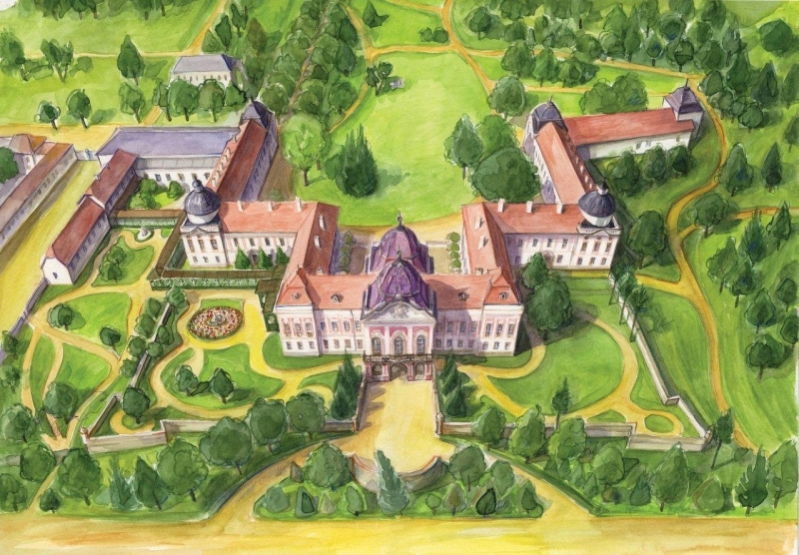 A XVIII. század egyik legtekintélyesebb magyar főura, Grassalkovich I. Antal (1694–1771) gróf 1735 után kezdte meg a gödöllői kastély építtetését. Az első építési szakasz 1745-ig tartott: Mayerhoffer András tervei alapján ekkorra készült el a belső udvart közrefogó első U-alak, a díszteremmel és a főúri lakosztályokkal. 1746 és 1749 között két új szárnnyal bővült az épület mindkét oldalon: a déli szárnyban istálló és szénapadlás kapott helyet, az északi szárnyban pedig ekkor készült el a ma is működő római katolikus templom. Ebben az állapotában láthatta a kastélyt Mária Terézia királynő, aki 1751-ben látogatta meg Grassalkovichot Gödöllőn.Ezt követően Grassalkovich I. Antal élete végéig több szakaszban folytatta a kastély bővítését és átépítését. A kettős U-alakú épületben fia, Grassalkovich II. Antal (1734–1794) alakított ki barokk kőszínházat. Unokája, Grassalkovich III. Antal (1771–1841) nevéhez fűződik az északi oldal utolsó szárnya, az új narancsház megépítése és a franciakert tájképi kertté való alakítása. Az épület egyedi építészeti megoldásai mintaként szolgáltak a magyar barokk kastélyok számára. Grassalkovich III. Antallal 1841-ben kihalt a család férfi ága. A leányágon tovább öröklődő birtokot a kastéllyal együtt 1850-ben báró Sina György (1783–1856) vásárolta meg, akinek fia, Sina Simon (1810–1876) adta el 1864-ben egy belga banknak. 1867-ben kezdődött az épület második fénykora. A magyar állam által megvásárolt, felújított és átalakított kastély koronázási ajándékként I. Ferenc József és Erzsébet királyné pihenő rezidenciája lett.