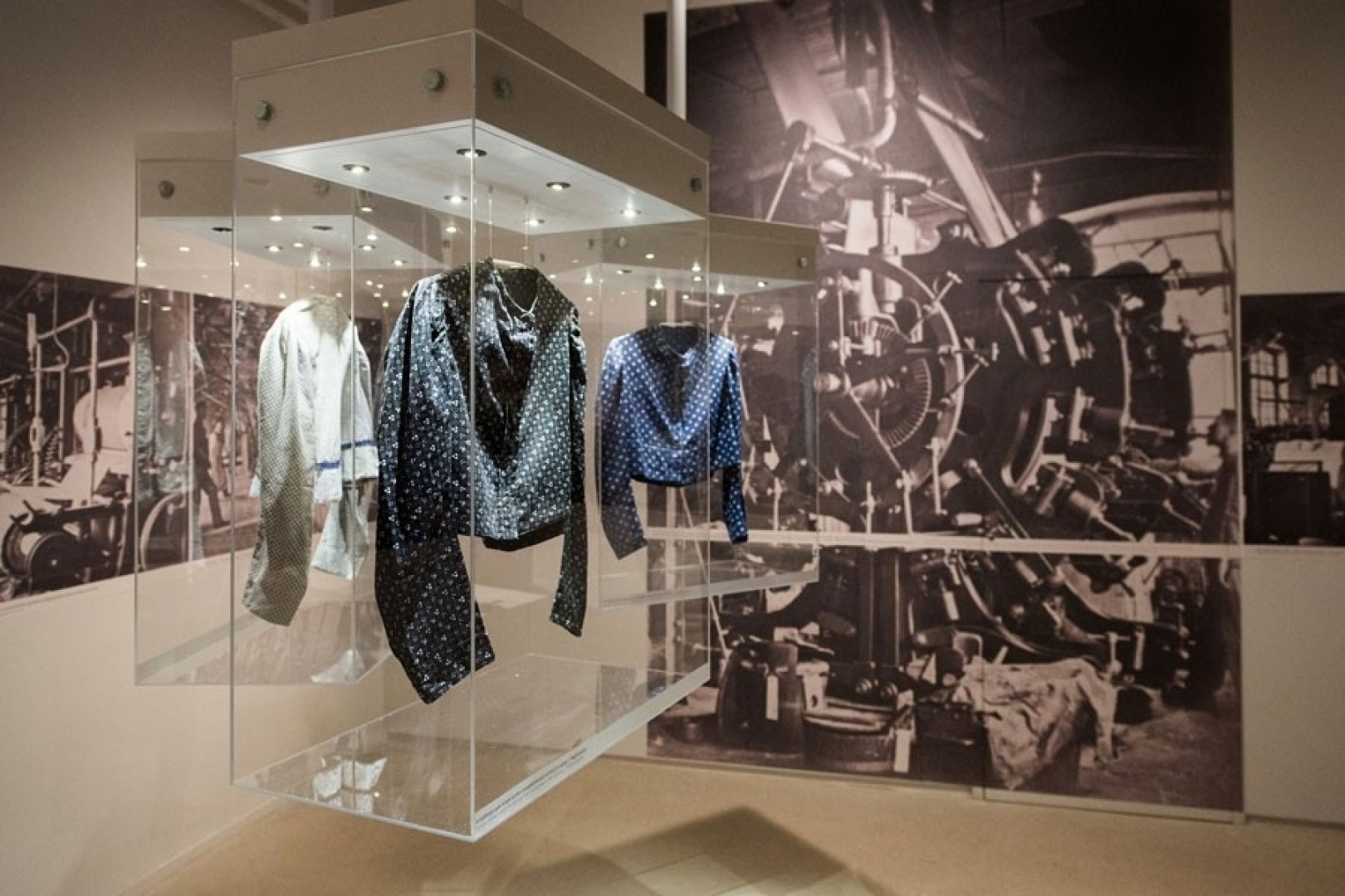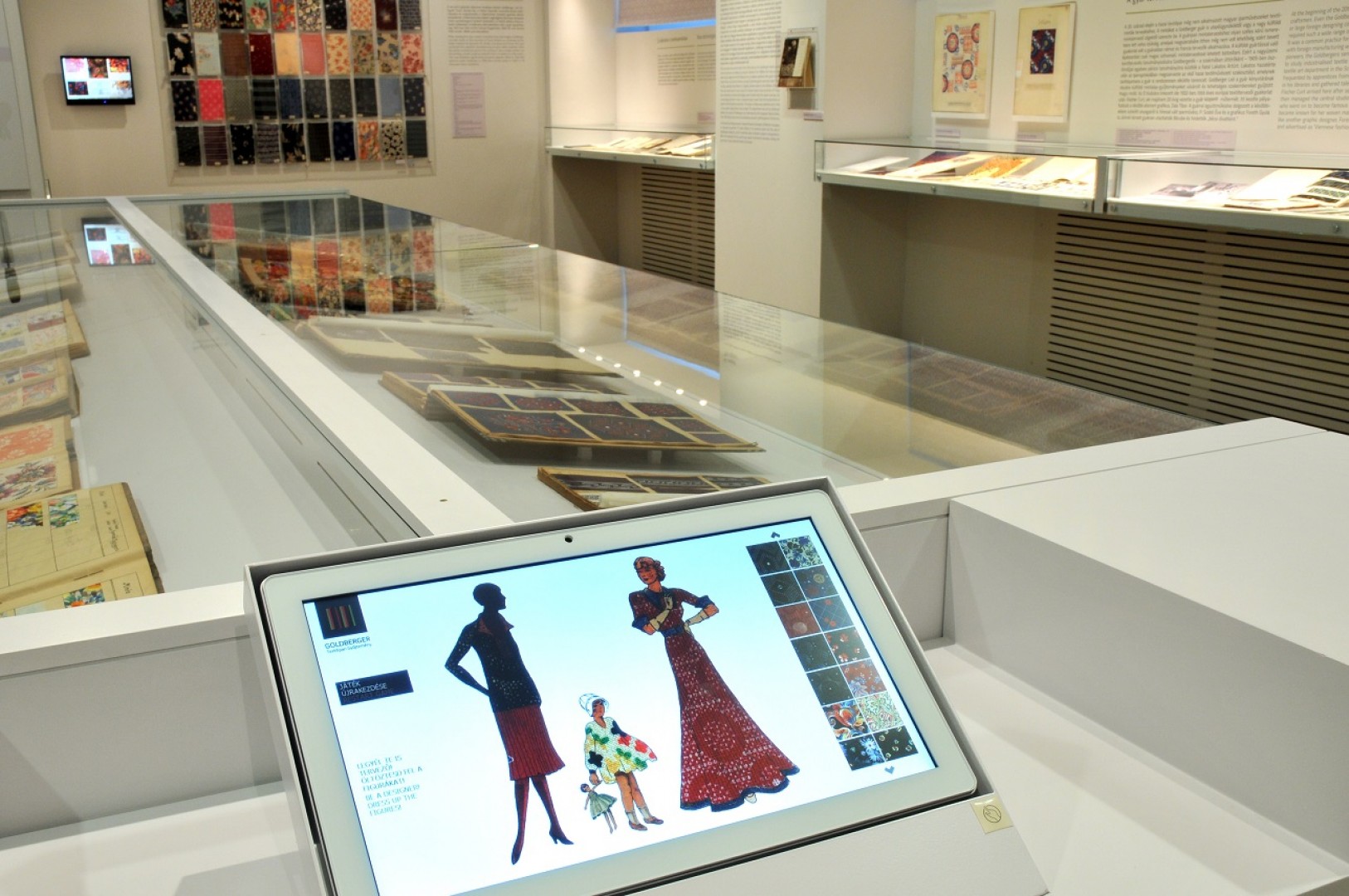 A tárlat a Goldberger család óbudai letelepedésének, 18. századi történetének, majd a kékfestő műhely alapításának bemutatásával indul. A második szakaszban számos technikai újítással ismerkedhetünk meg, melyek az újfajta kelmék előállítását segítették elő, s amelyek sikere lehetőséget teremtett arra, hogy a kis üzemből nagy volumenű gyár alakuljon. Az igazi elismerést és a világsikert a két világháború közötti időszak hozta meg az üzem számára. A prosperitás bemutatását követően, a kiállítás utolsó részében választ kaphatunk arra is, miként létezett a gyár a szocialista tervgazdálkodás időszakában, illetve mi vezetett a megszűnéséhez.