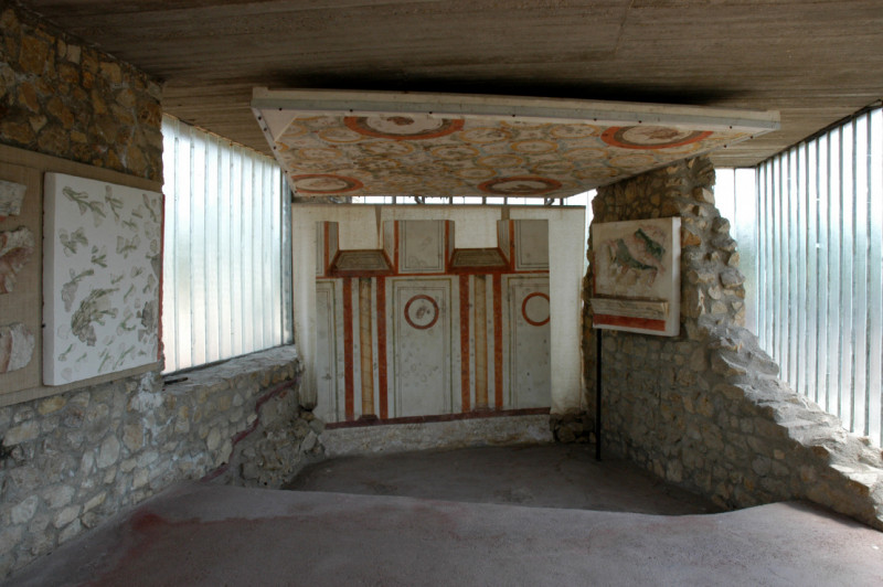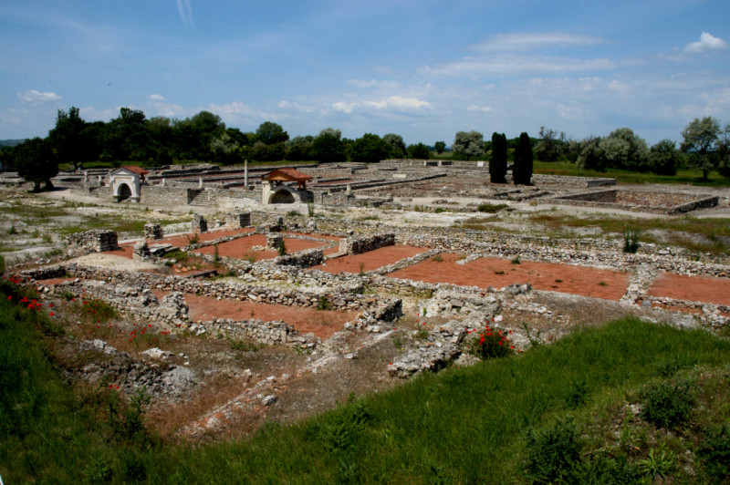 A Látogató Központtól balra nyíló utat választva a néző a Park teljes területéről átfogó képet kap. Az út mellett kerültek elhelyezésre a feltárások előtt előkerült kőemlékek, sírkövek, mitológiai jelenetek. Az út a városközpont nyugati végéhez vezet, ahol a nyugati városkapu, városfal látható. A körjárat a széles nyugat-kelet irányú főutcán (decumanus maximus) folytatható, baloldalt a IV. századi helytartói palotával, jobboldalt a helytartói testőrség laktanyájával. Jobboldalt a továbbiakban ez egyik ókeresztény bazilika homlokzata látható. A bazilika belső terében egy korábbi épület falfestményei tekinthetők meg. Tovább haladva a látogató az észak-déli főutca (cardo maximus) kereszteződéshez ér, amelynek baloldalán a II. századi szentkerület vendégházának maradványai és a keleti oldalon az épület romjai fölé épített másik ókeresztény bazilika emelkedik. A nyugat-kelet irányú főutca itt a szentkerület, majd a IV. század főteréhez, a forumhoz ér. Északi oldalát lépcsőkkel áttört és díszkutakkal ékesített fal zárta le. A lépcsők a császárkultusz szertartásainak, illetve a tartománygyűlés színhelyének csarnokaihoz vezetnek. A tér keleti oldalát a szentkerület nagy temploma zárta le, amelyet az istenné nyilvánított Augustus (vagy az összes istenné nyilvánított császár) tiszteletére emeltek. Tovább haladva kelet felé, a hivatalos ünnepségek lakoma-terme tekinthető meg. A dél felé elkanyarodó út újabb kőemlékekkel díszített úthoz ér, amely visszavezet a kiinduló térséghez. Innen dél felé haladva a déli városrész feltárt épületeihez jut el a látogató, IV. századi lakóházakhoz, amelyeket a IV. század végének zavaros viszonyai között lakói elhagytak és a város e területét ettől kezdve temető foglalta el. A feltárás itt a legkorábbi időszakból való kis kunyhók egy részét is bemutatja.