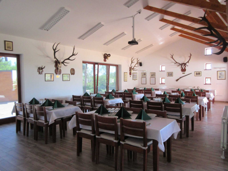 Kültéri tablóinkon a Merán és Eszterházy családok története, illetve az előbbiek híres fővadászának, Öhlmann Péternek az életútja kerül bemutatásra. Az átadási ünnepség keretében Szent Hubertus szobrát is felavattuk. Egy 260 éves, öreg kocsányos tölgy törzsén gránittábla őrzi az elmúlt majd két évszázad során a déli-Vértesben hosszabb időn át szolgáló, kiemelkedő erdészek és vadászok nevét. Kuriózumként tekintünk arra a 80 köbméteres bemutató faszénégető boksára, amely a faszénégetés történetét és menetét mutatja be. Kibérelhető konferenciatermünk rendszeresen különböző kiállításoknak ad helyet, jelenleg az orvvadászat sajátságos világába enged bepillantást. A múzeumtól alig 400 méterre, a tanösvény egy leágazásaként kialakítottunk egy szóróval, etetővel, sózóval, illetve nagyjából 10-15 férőhelyes magaslessel ellátott vadmegfigyelő pontot, mely azokban a különösen nagy érdeklődésre számot tartó időszakokban is lehetőséget nyújt a vad megfigyelésére, amikor ezt erdőlátogatási tilalom korlátozza.