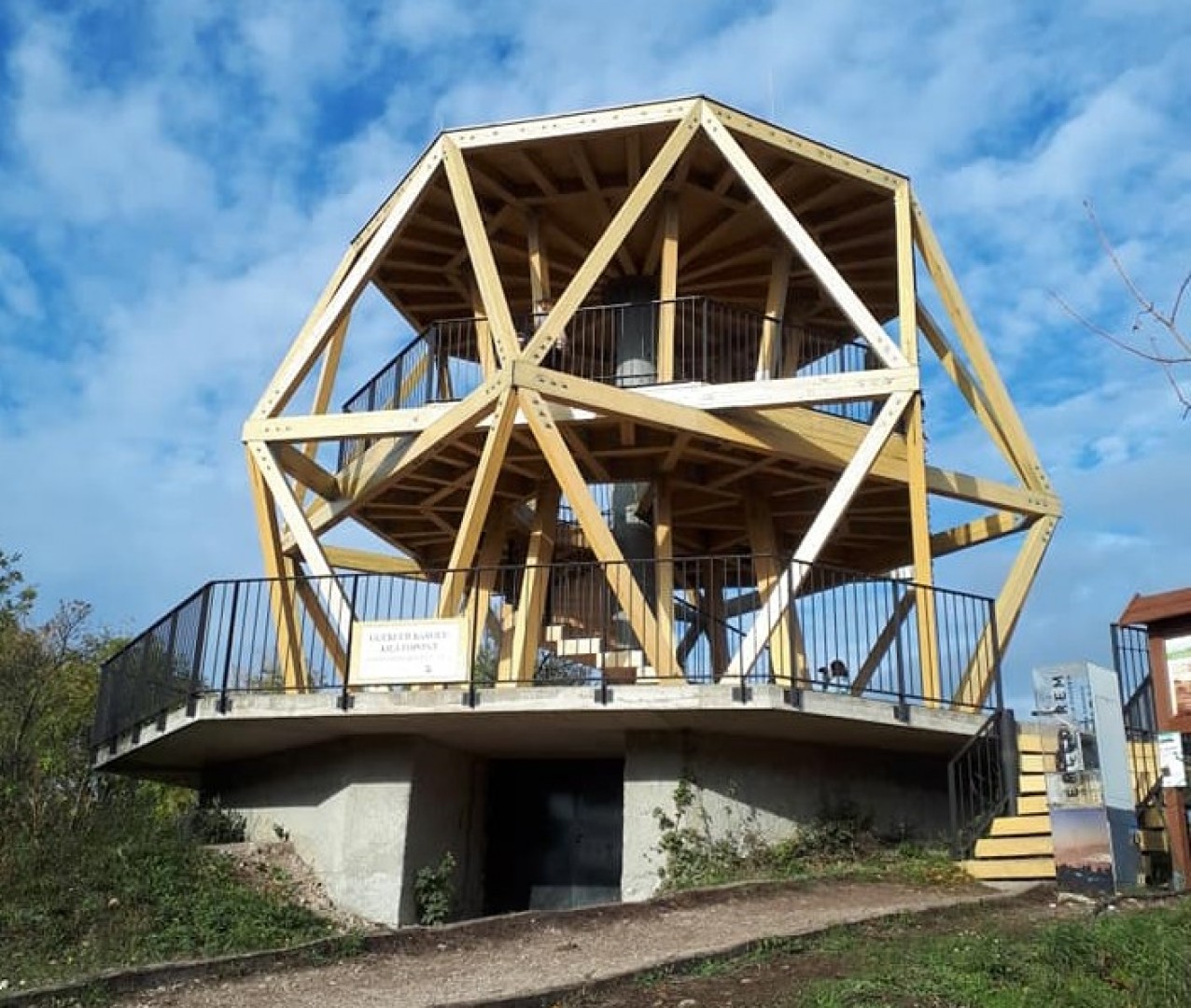 A kilátó egy második világháborús légvédelmi ütegállás, mint a 21. századra is megmaradt tájseb begyógyításaként, annak újrahasznosításával jött létre. Alaprajza szabályos nyolcszög, vasbeton kilátószintje 4 méter magasságban helyezkedik el, bonyolult kiképzésű faszerkezete 40 köbméter rétegragasztott fenyőgerenda és a rögzítési pontokon közel 4,5 tonna acélszerelék felhasználásával készült.