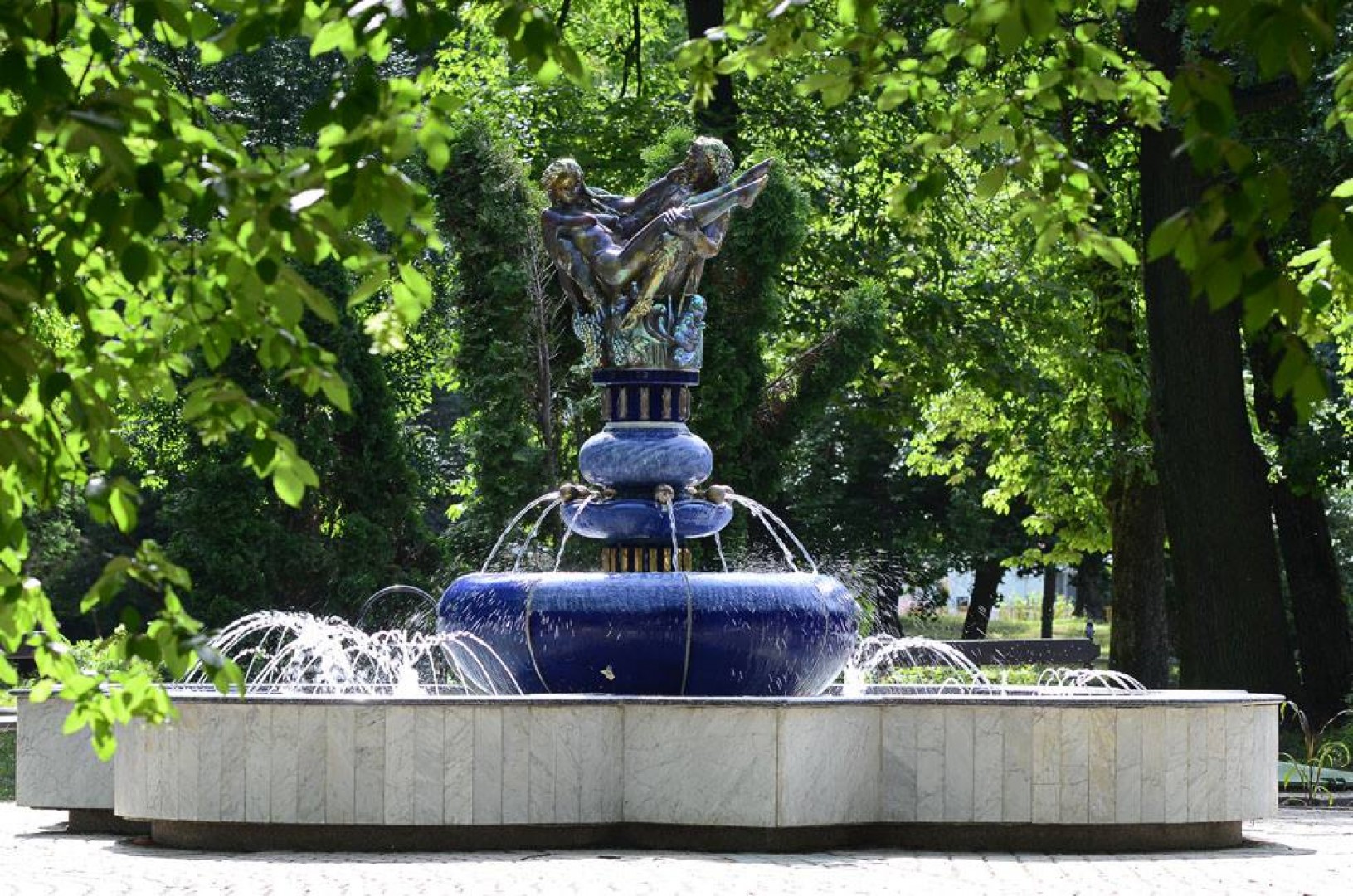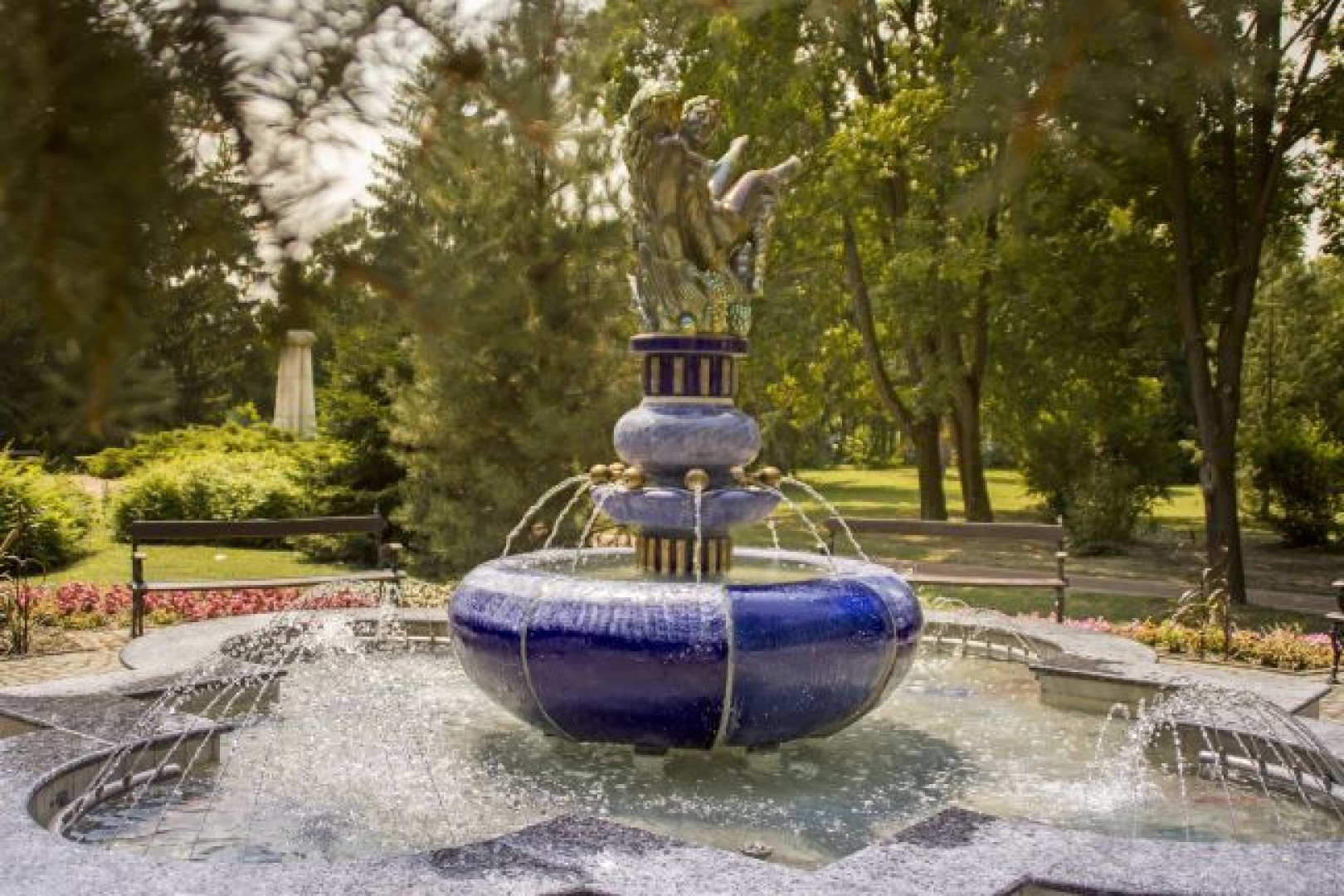A 2000-ben elkészült, Zsolnay alapanyagú értékes szökőkutat a harkányi víz legendáját szimbolizáló motívumokkal díszítették.