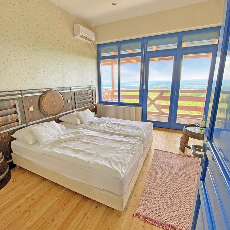 Borhotelünk 4 db dunai panorámás és 4 db Provancei stílusú szobával várjuk vendégeinket. Szobáink és éttermünk kutyabarát. Panorámás szobáink erkélyéről és a Borbirtokunkról egyaránt 35 km-es dunai panoráma tárul a szemünk elé. Klimatizáltak, frissen felújítottak, saját zuhanyzós fürdővel, boxspring különálló és egybe tolható ágyakkal felszereltek.