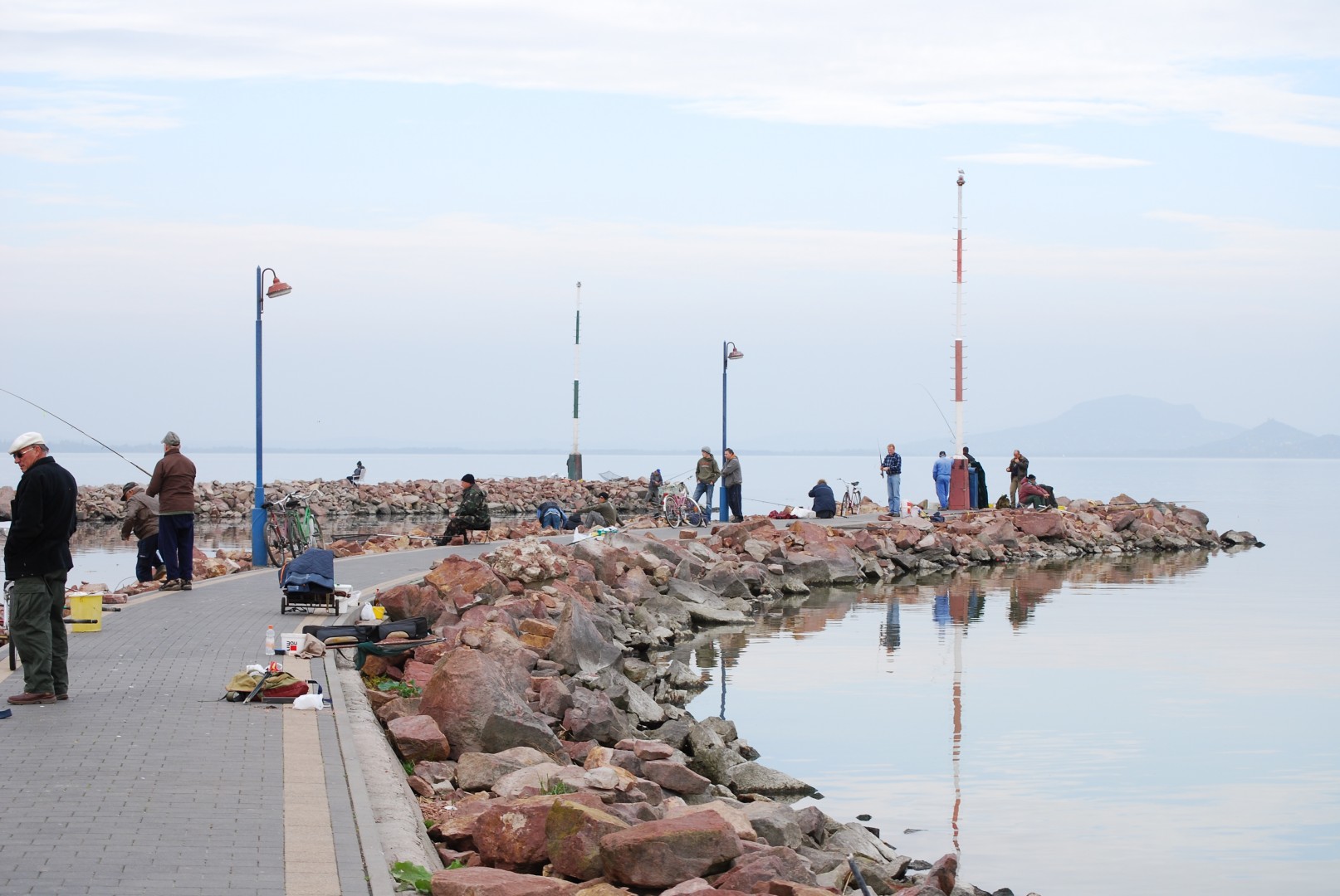 Balatonmáriafürdő kikötőjének mindkét mólója kedvelt horgászhely.