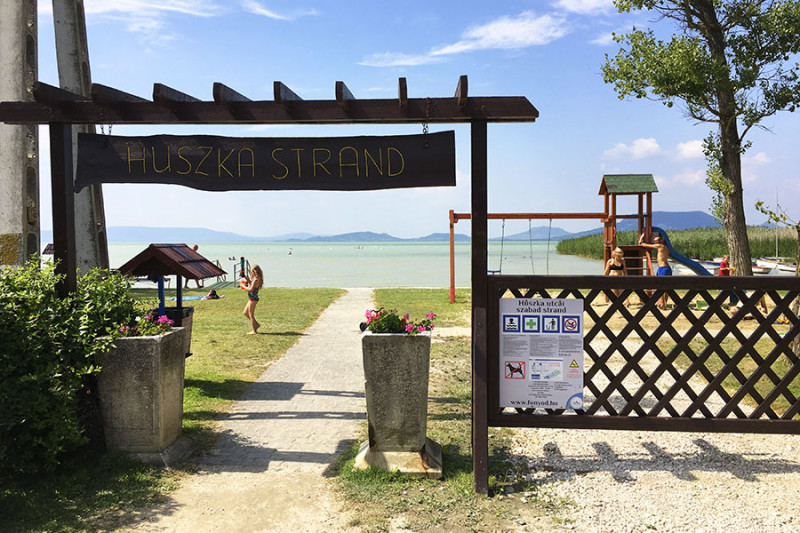 A Huszka utcai, kicsi és hangulatos szabadstrand Fonyód Alsóbélatelep városrészén található. A füvesített strandon büfé és játszótér található, a legkisebbeknek pedig tovább kedvez a pancsoláshoz tökéletes sekély víz. 2005-ben újították fel – utána kétszer is megkapta a Virágos Balatonért Mozgalom kiváló minősítését