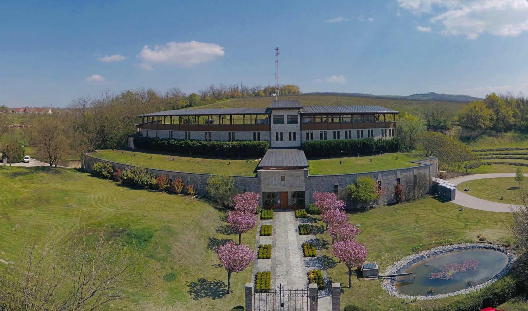 A gyönyörű környezetben megépült pince pedig nemcsak esztétikus, de megfelel a kor minden elvárásának. A Borászat legfőbb céljai között szerepelt, hogy rövid időn belül képes legyen a hazai piacon egy olyan termékcsaládot felsorakoztatni, amelynek elemei kitűnő minőségűek, mégis elfogadható áron kaphatóak. Emellett dűlőink kivételes fekvésének köszönhetően egyedi stílusú csúcsborokat is készítünk!