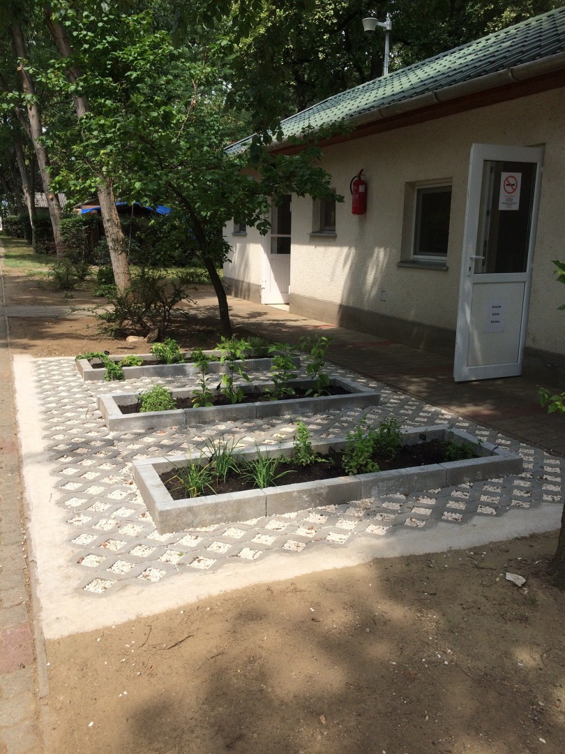 A strandhoz tartozik egy 240 férőhelyes, háromcsillagos, füves talajú kemping, amely igen kedvelt a külföldi vendégek körében is. A kemping területén 4 db 3 személyes faház, 2 db 2 személyes Kőszoba illetve a 15 személyes Cimboraház bérelhető.