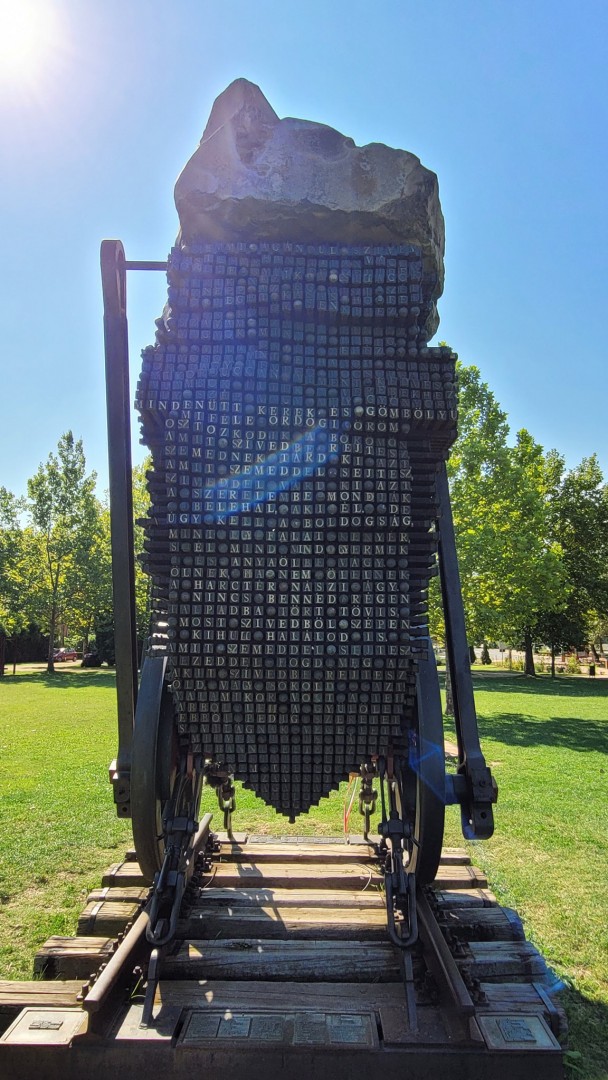 A településen található, írógépbillentyűkből, versidézetekből és vasúti elemekből összeállított emlékmű Ortutay Tamás szobrászművész és Sarkady Mária építész alkotása, amely József Attila költeményeit 5200 betűből idézi meg, egy sínpárra helyezett vonatkerekeken állva.