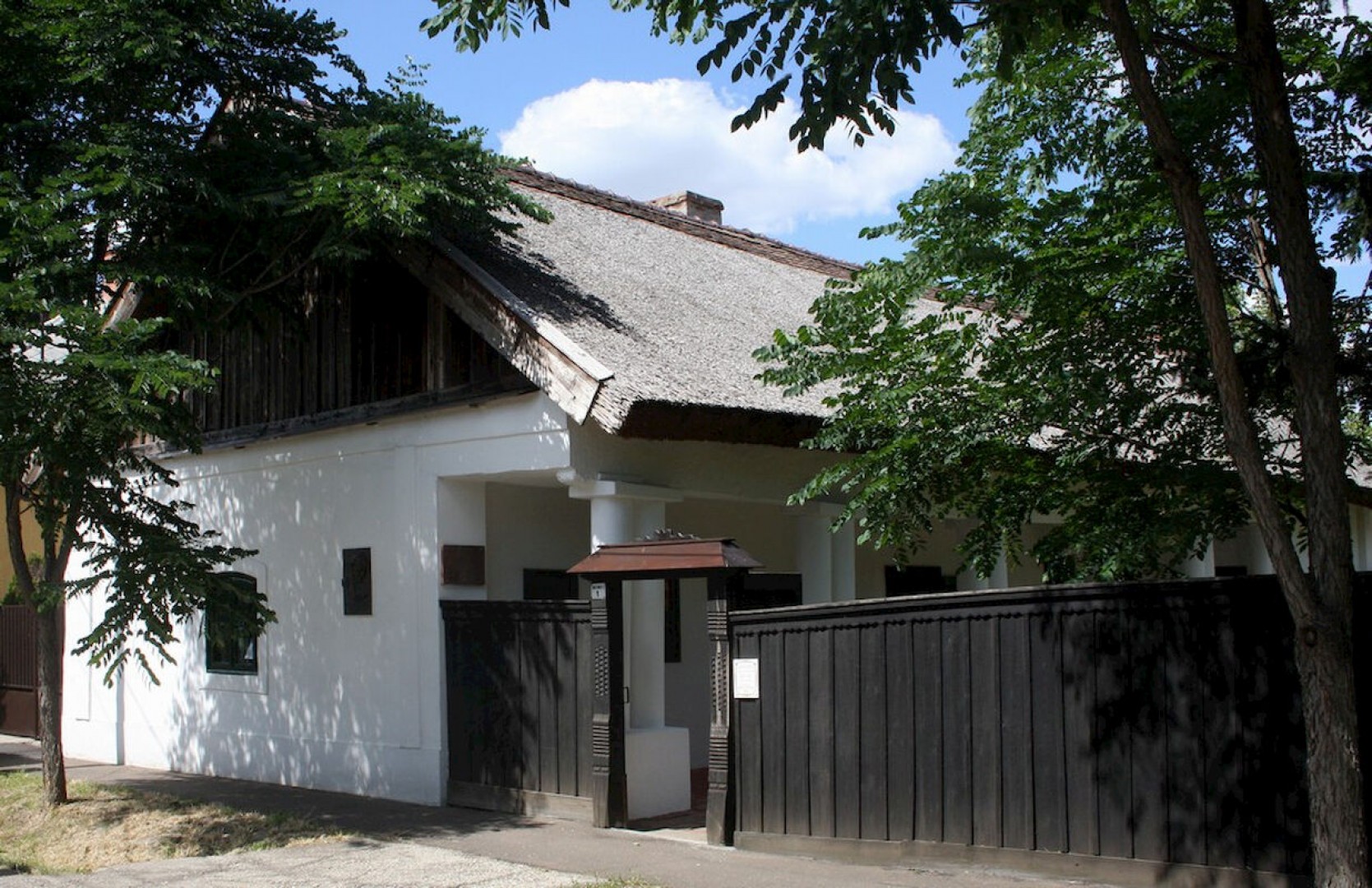 A népi klasszicista stílusban épült lakóház már önmagában is érdekes látvánnyal gazdagítja az érkezőket. A múzeum előtt magasodó kunkaput Németh Lajos ácsmester készítette a karcagi fedeles kiskapuk mintájára. A művészi igénnyel megfaragott oszlopok nemes megjelenést kölcsönöznek az építménynek. A tornácot 5 ikeroszlop támasztja, amelyek egytől-egyig külön talapzaton állnak.