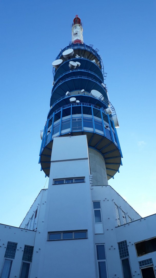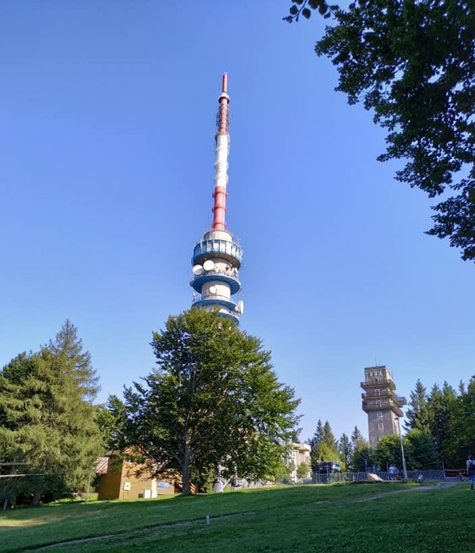 A már messziről észrevehető 180 m-es TV torony alsóbb szintjén egy fedett és egy nyitott kilátóterasz található, ahonnan körpanorámában gyönyörködhetünk. Szerencsés kirándulóknak tiszta égbolt mellett, északi irányban még a Tátra vonulatai is feltárulhatnak.