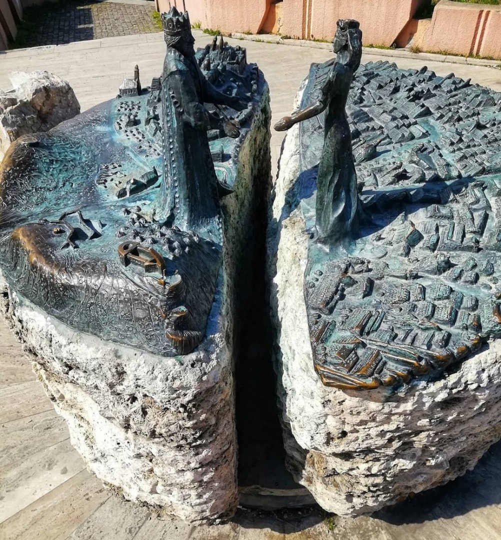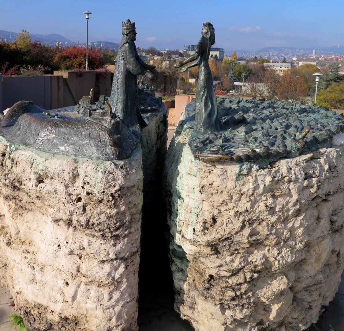 Egy kis érdekesség: A szobrokat elválasztó hasadék a Dunát jelképezi., míg a két ember szobor egymás felé nyújtott keze pedig a két városrész egyesítését szimbolizálja.