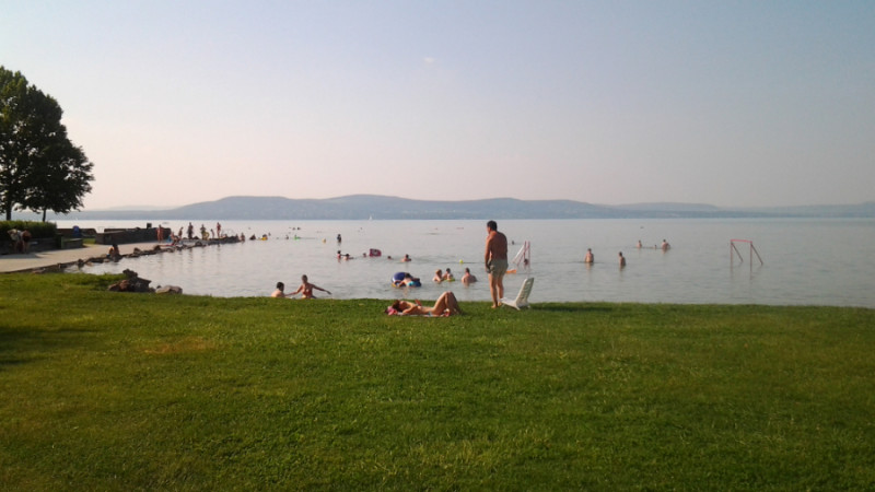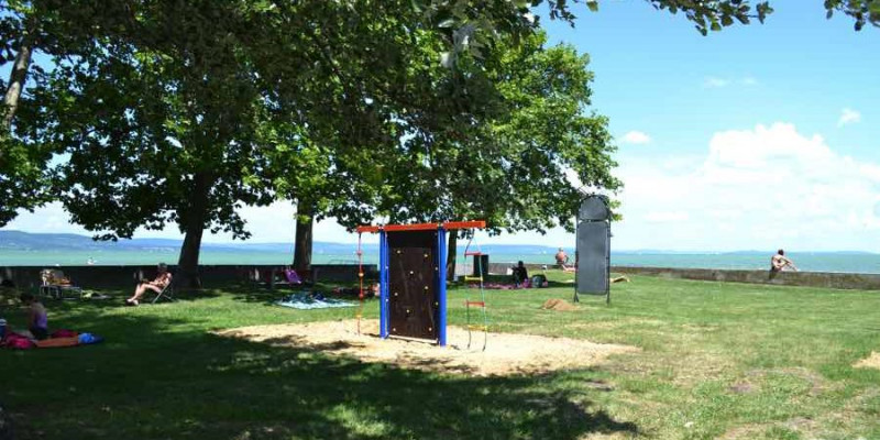A parttól lassan mélyülő, sekély víznek köszönhetően a kisgyermekes családok kedvence ez a strand.