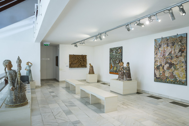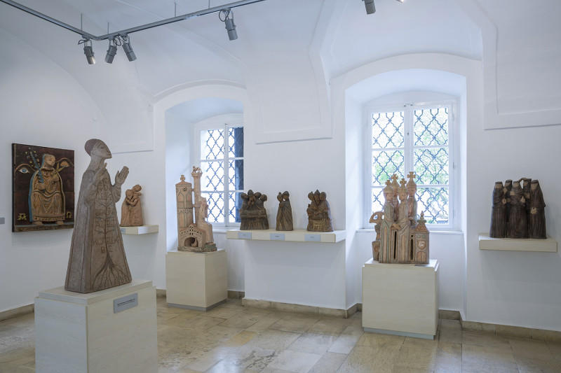 A múzeum első és második termében a művész kisebb vázlatait, munkásságának kezdeti éveit ismerhetjük meg. A harmadik teremben az 1950-es évek munkái, a negyedik teremben pedig az érett korszak művei kapnak helyet. A régi épület boltíves, szakrális teret idéző pincéjében (mely Kovács Margit kívánságára a kezdetektől a kápolnák hangulatát idézi) a keresztény ikonográfia hagyományait követő műtárgyak kaptak helyet. Az új szárny emeleti galériáján a művész Pozsonyi úti lakását felidéző enteriőr látható, a Görög utcai fronton Kovács Margit művészetének utolsó korszaka követhető végig.