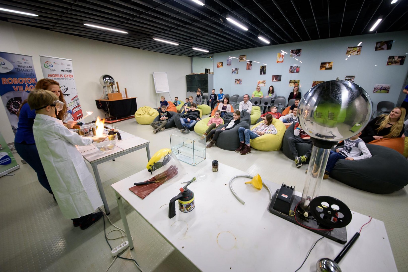 Az érdeklődő látogatókat a rendkívül látványos és inspiráló Központunk két helyszínén, a demonstrációs térben és az alkotóműhelyben oktatóink és demonstrátoraink fogadják. A kiállítótérben testközelből tapasztalhatók meg a 3D nyomtatás, a kiterjesztett és virtuális világ lehetőségei, a robotika, az okosotthon eszközei, animációk készítése Bluebox Stúdióban, mobiltechnológia előnyei és a humanoidok. Az alkotóműhelyben biztosítjuk a megismert eszközökhöz kapcsolódó kiscsoportos foglalkozásokat, és folyamatosan törekszünk a változatos és mindig megújuló tematikák összeállítására.