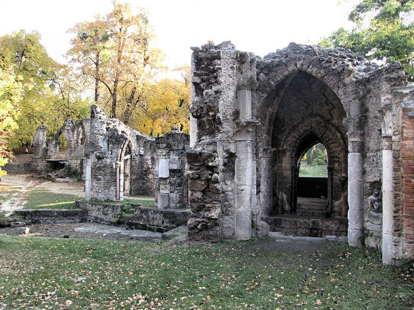 A háromhajós templom maradványait imitáló rom romantikus stílusban épült. Egy francia építész, Charles Moreau nevéhez köthető az Angolpark északi részén található műremek.