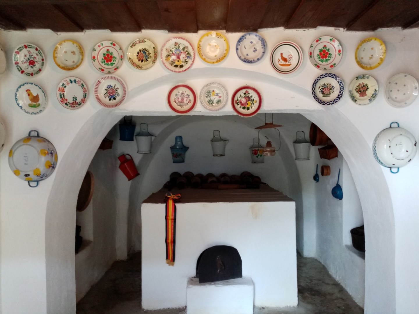 A konyha központi terét, a kéményalját a négyzetes alakú fekvő kemence tölti ki. A kemence hátulsó negyedén fektetve sorakoznak a tejesköcsögök, két szélüket köpülővel határolták. A helyiség fölött kőből mívesen rakott, boltozatos szabadkémény áll. A szabad falfelületeken sütő- és főzőeszközök sorakoznak.