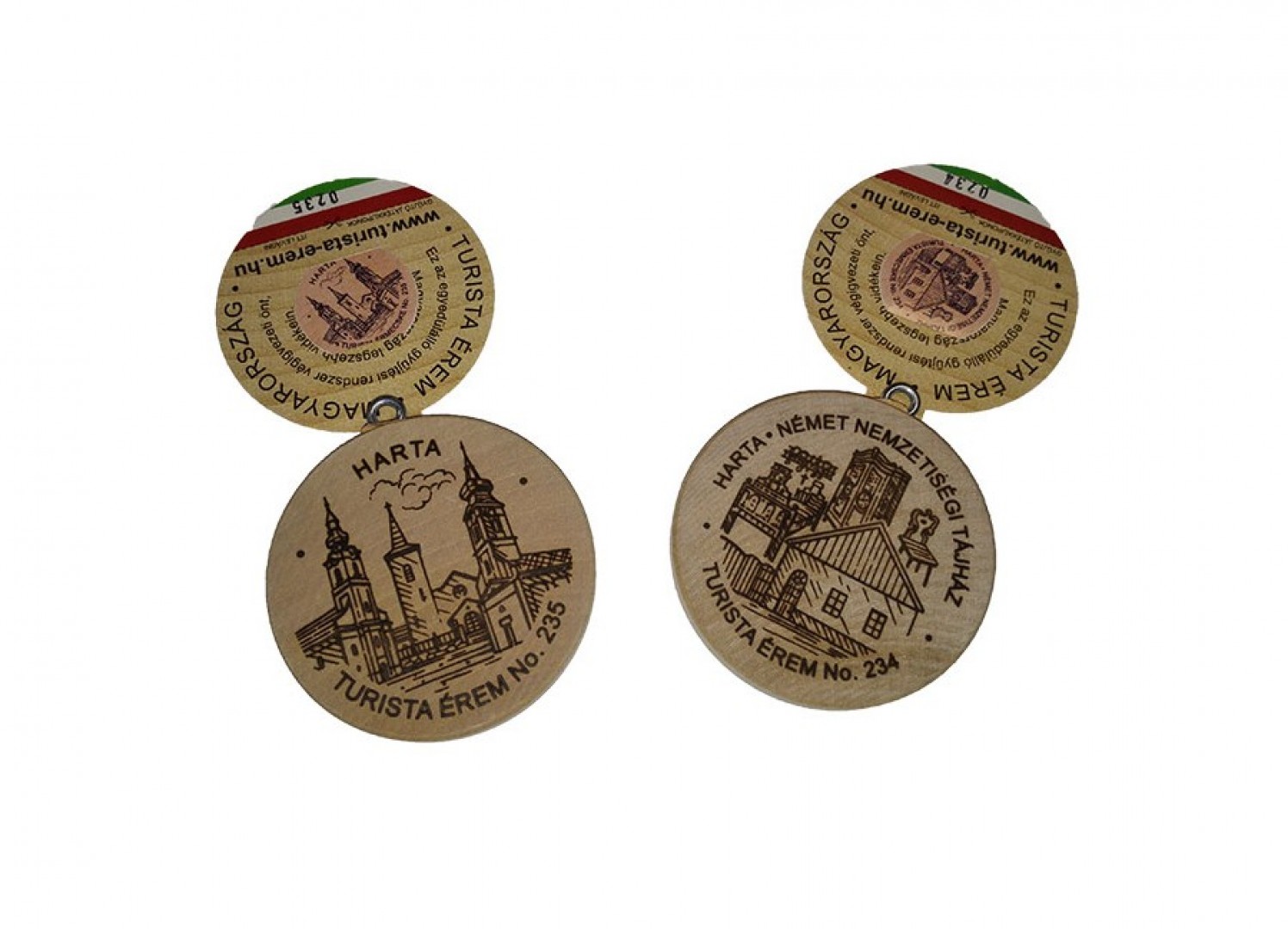 Turista érem Harta, Német Nemzetiségi Tájház, a Tájházban kapható 600.-Ft/db áron.