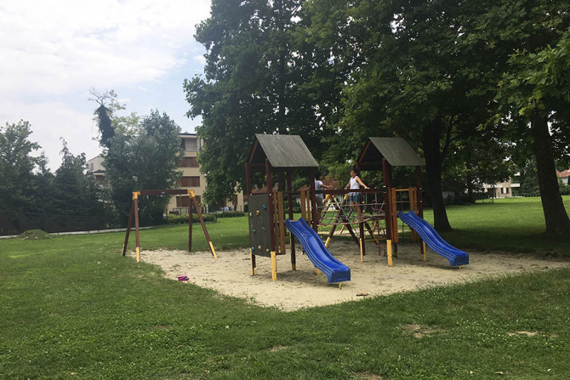 A sekély, lassan mélyülő tópart kedvelt a kisgyermekes családok körében is. A strand teljes területét - néhol akár száz méter szélességben - szépen gondozott pázsit borítja.