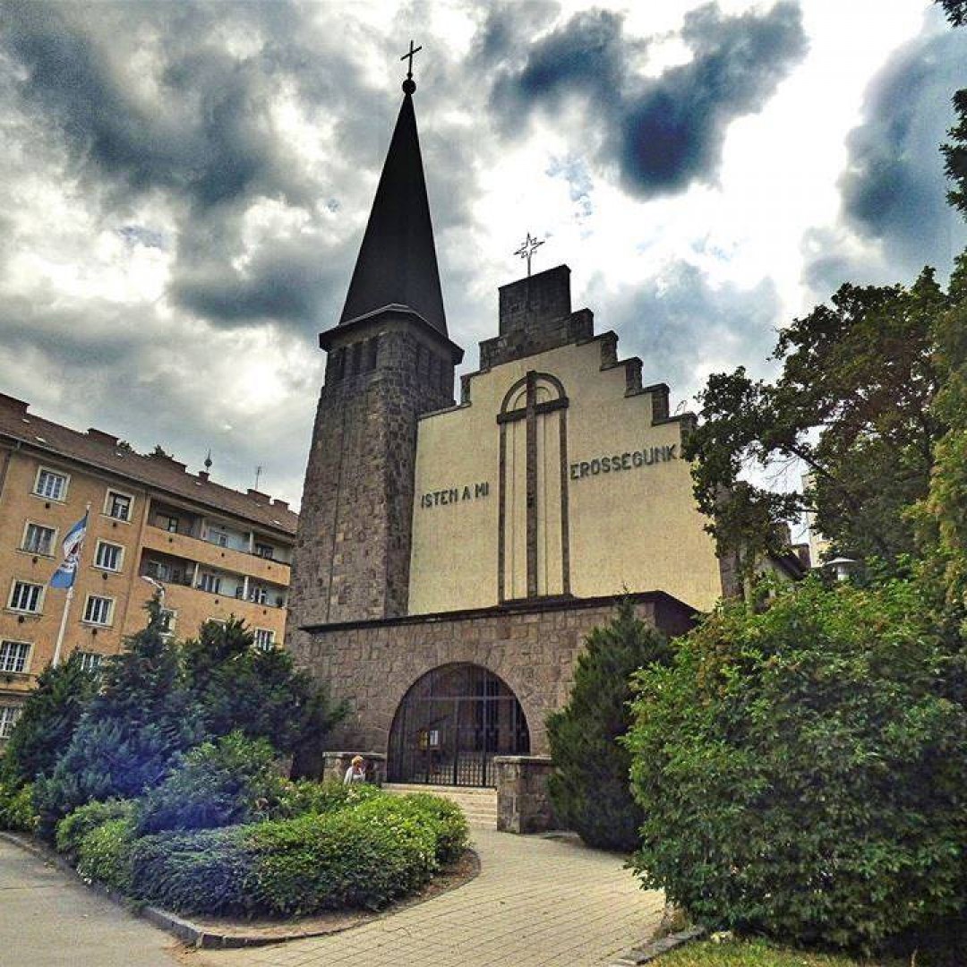 Az 1843-ban alakult óbudai evangélikus egyházközség temploma 1935-re épült fel, Friedrich Lóránt terve alapján. Vasbeton tartószerkezete már a modern egyházművészet példája. Külső borítása főként terméskő. Trapézszerűen záródó mennyezete belső vasbeton pilléreinek és bordáinak közeit színes fakazetták töltik ki, követve az evangélikus fatemplomok csodálatos hagyományát. Eredeti orgonája, amit a “legszebb hangú evangélikus orgonának” tartottak, a világháborúban keletkezett tűzben elolvadt, fa részei elégtek.