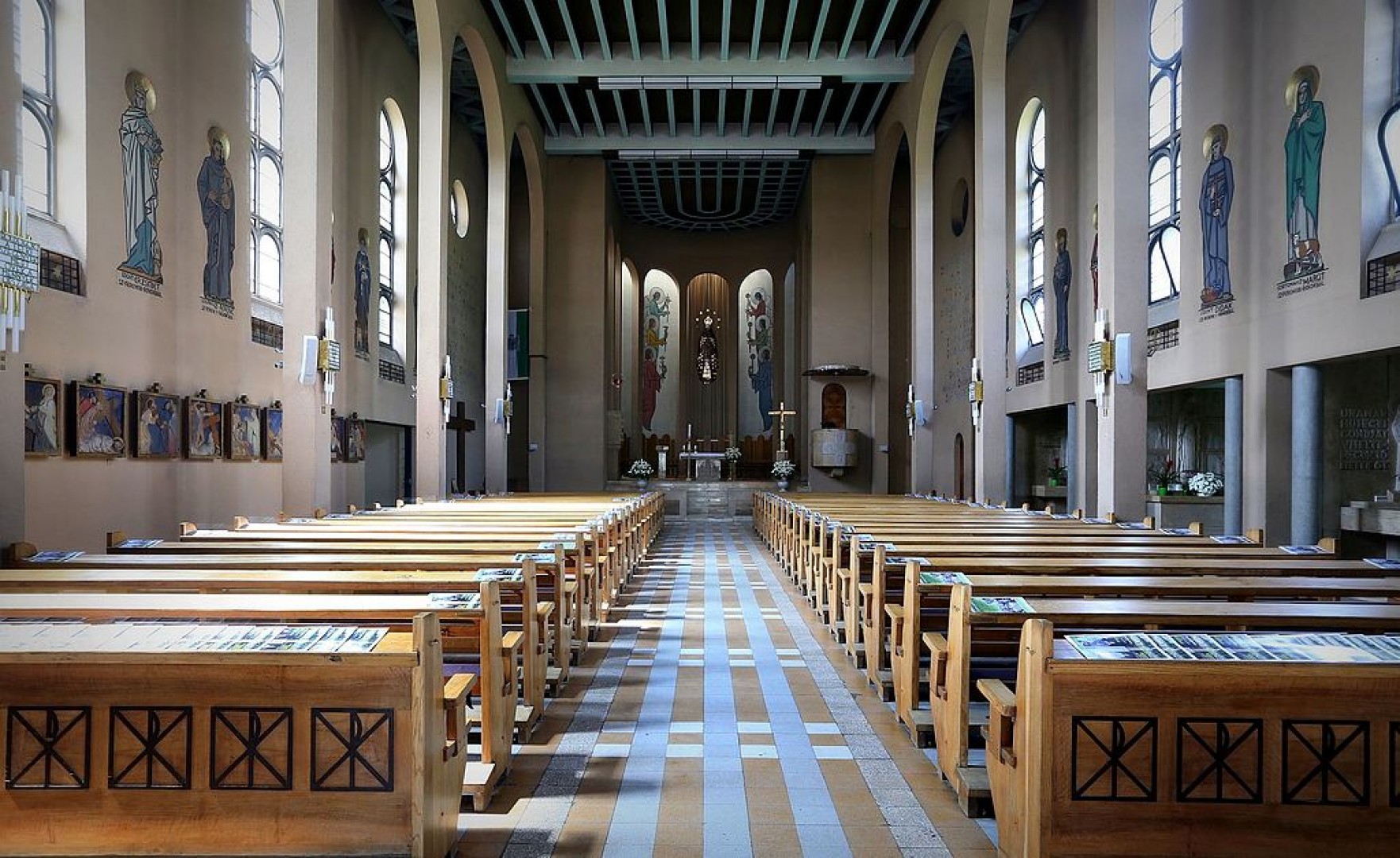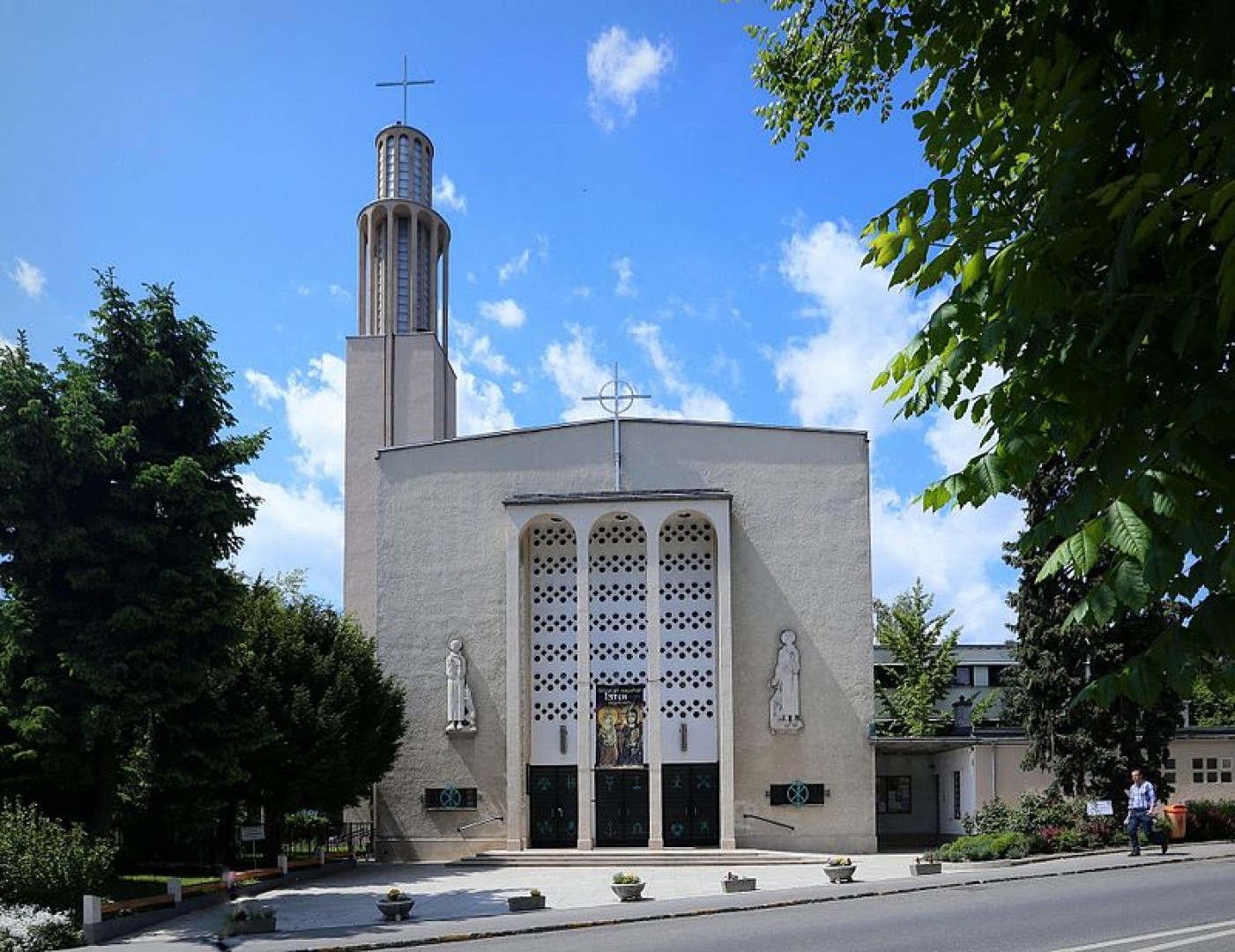 Az épületegyüttes részei: maga a templom, a rendház és a harangtorony. 1934. október 10-én szentelték fel. A templom melletti tér – buszvégállomás kis üzletekkel – 1937-ben épült meg. A templom felújítása, az új liturgiai tér kialakítása, valamint a rendházra készült emeletráépítés Harsányi István és Vladár Ágnes munkája. A homlokzaton Vilt Tibor szobrai láthatók. A faliképeket Leszkovszky György készítette – Unghváry Sándor festőművész kartonjai alapján – 1934-ben. Az üvegablakok Árkayné Sztehlo Lili alkotásai (1934). A szószék (a négy evangélista jelképeivel) és az eredeti oltár domborművei Ohmann Béla munkái (1934). A Jézus-szive oltárt (1934), a Szent József-oltárt (1939), valamint a keresztút domborműveit (1939) Lőte Éva készítette. A Szűzanya-oltár és a Szent Ferenc-kápolna fafaragású reliefje a márványoltárral együtt Bicskei Karle István munkája (1935). A Szent Teréz-oltár 1942-ből való (Hallgass Jenő Zoltán alkotása), és Rimanóczy adományából készült.