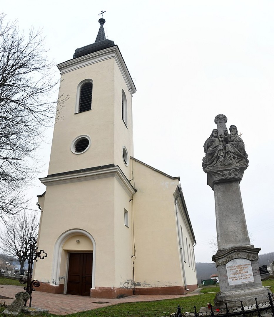 A pilinyi templomtest jelentős részben középkori. 1698-ban fa templomot építettek, míg 1713-ba a középkori templom maradványairól tettek említést. A mai templom 1745-be épült, festett, állatalakos mennyezete volt. Mellette fa harangtorony állt. 1912-be teljesen átalakították, új harangtornya is ekkor készült. Az egyhajós, megközelítően keletelt kegyhely előreugró homlokzati toronnyal készült. A falak egyszerűek, tagolatlanok, félköríves, újkori ablakokkal. A szentély a hajótól keskenyebb, nyolcszöges záródású. Sekrestyéje az északi oldalon van. A hajó síkmennyezetű, karzata is síkfödémmel készült. A diadalív félköríves. Harangjának készítése a XV. század második felére tehető. A nagyharang átmérője 70,5 cm, kulturális örökségünk kiemelkedő eleme, ugyanis a magyarországi legkorábbról fennmaradt harangok körébe tartozik. 1926-tól feladata a szombati és vasárnapi, valamint az ünnepnapi szolgálat. 1994-ben hozott a képviselő-testület olyan döntést, amely szerint a több évszázados harang a település címerében is jelenjen meg.
