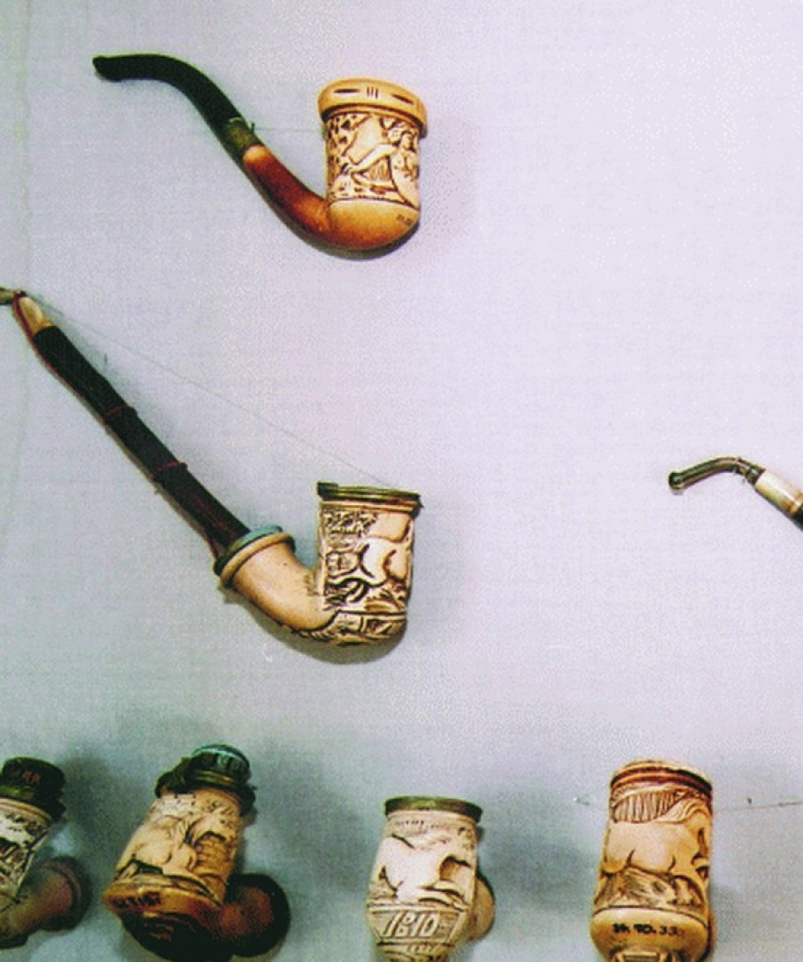 Nyolc országot képviselnek a pipák szebbnél szebb darabjai. A terem közepén a nagy vitrinben családi mozsár, téhelypipák másolatai, valamint dohányzási segédeszközök láthatóak. Itt találhatóak még a kínai kókuszhéj, medvealakú dohánytartó különlegességek. A falakat pipázó jelenetek színesítik, képzőművészeti alkotásokkal gazdagítva. A kiállítás legérdekesebb három darabja a történelemben is közismert személyekhez kapcsolódik.