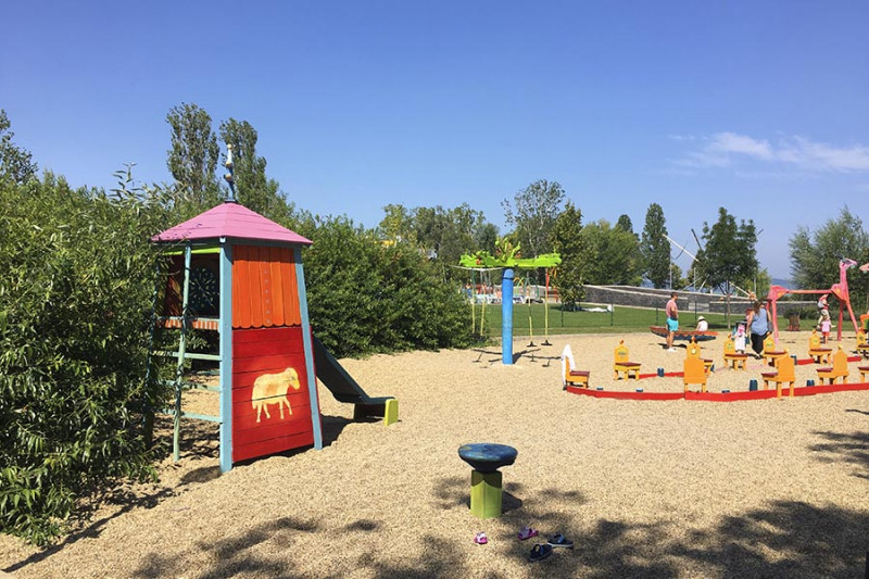 A Platán strand területén kapott helyett a „Balaton” játszótér, ami a 2-10 éves korosztály egyik legkedveltebb, különösen érdekes találkozóhelye. A homokozó a tavat formázza, melynek szélén a kis székek a környező települések nevét viselik. A létesítmény ingyenesen használható.