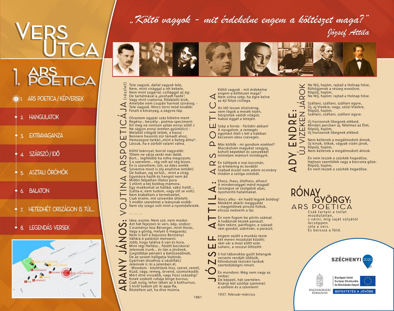 "A 2016-os „Balatonszárszó kulturális és aktív turisztikai fejlesztése” című pályázaton belül 2020 nyarán megvalósításra kerül a „Vers utca” elnevezésű interaktív elemekkel gazdagított, Balatonszárszó természeti, kulturális és szellemi értékeihez kapcsolódó projekt.