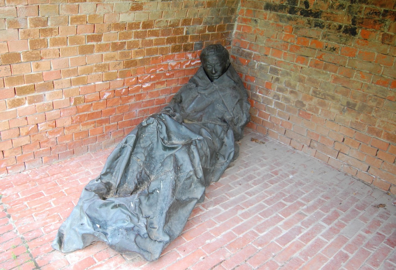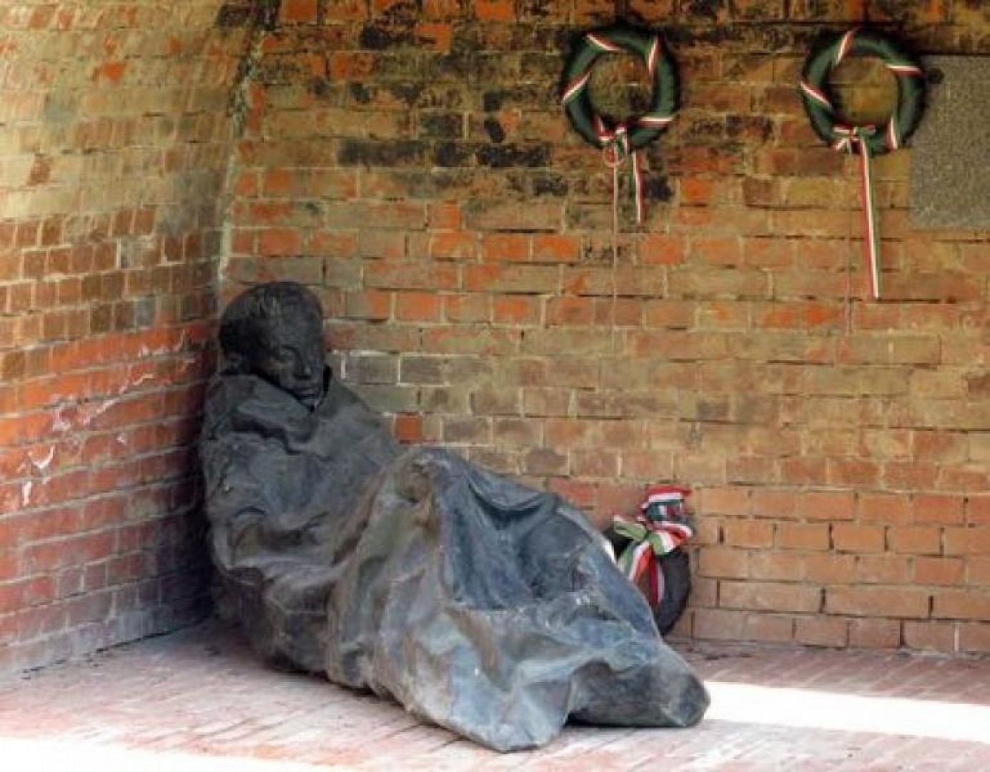 A felépített kemencében őt ábrázolja a fekvő bronzszobor, arcán az erőltetett menet gyötrelmei, az igazságtalan meghurcolás kínjait hirdető vonásokkal. A szobrot 1983-ban Meszlényi János készítette.
