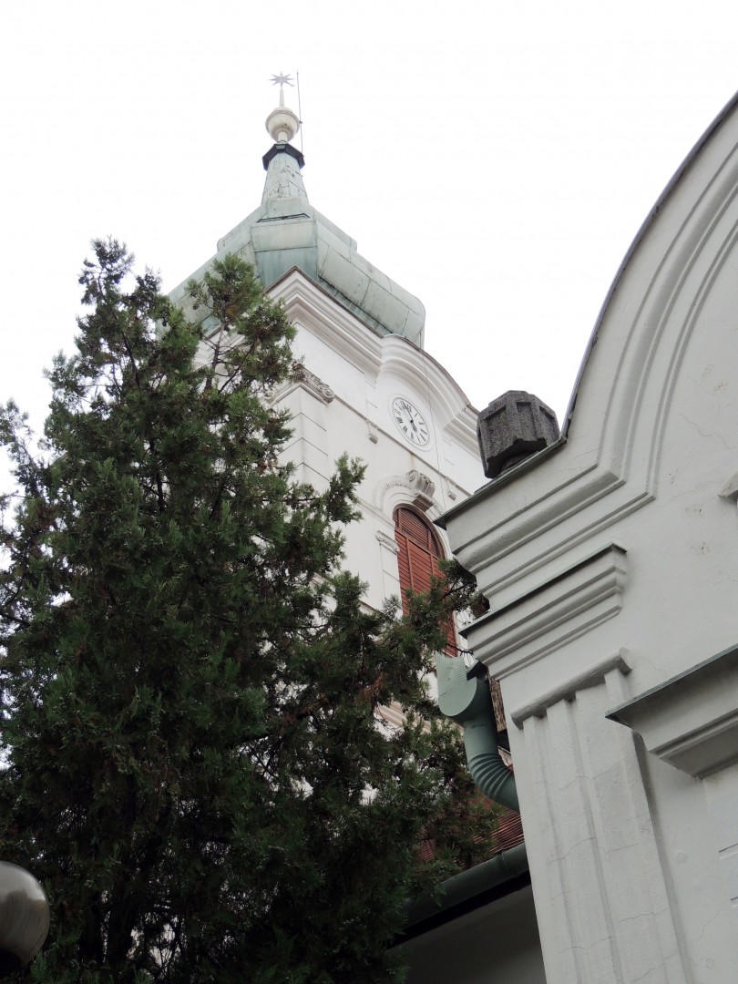 Templomunk 30 méter magas tornyának ma hagymakupolás tetején különleges "fiacsillagos" rézcsillag emlékeztet bennünket az értünk megszületett Megváltóra.