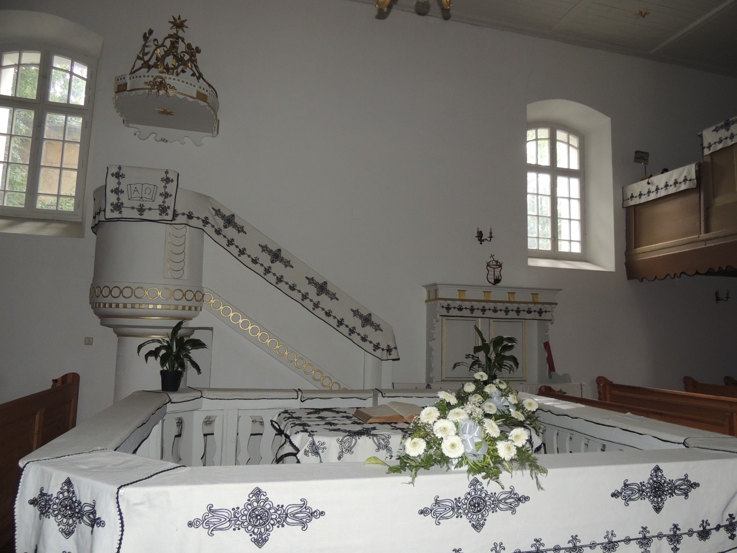 1816 a belső templomépítési munkálatok ideje lett. Kicserélik a régi fából készült szószéket és megváltoztatják a helyét, két oldalára ablakot vágnak. A szószékkel szembe presbiteri padokat építenek és az úrasztalát korláttal kerítik el. Ekkor készült a szószék feletti hangvető (szószékkorona) és a Mózesszék is. A bejárat új ajtót kapott, s a levett, régi ajtót a torony bejáratára helyezték. Ezzel nyeri el templomunk mai belső formáját. A templomtér 18 méter hosszú, 8,5 méter széles lett.