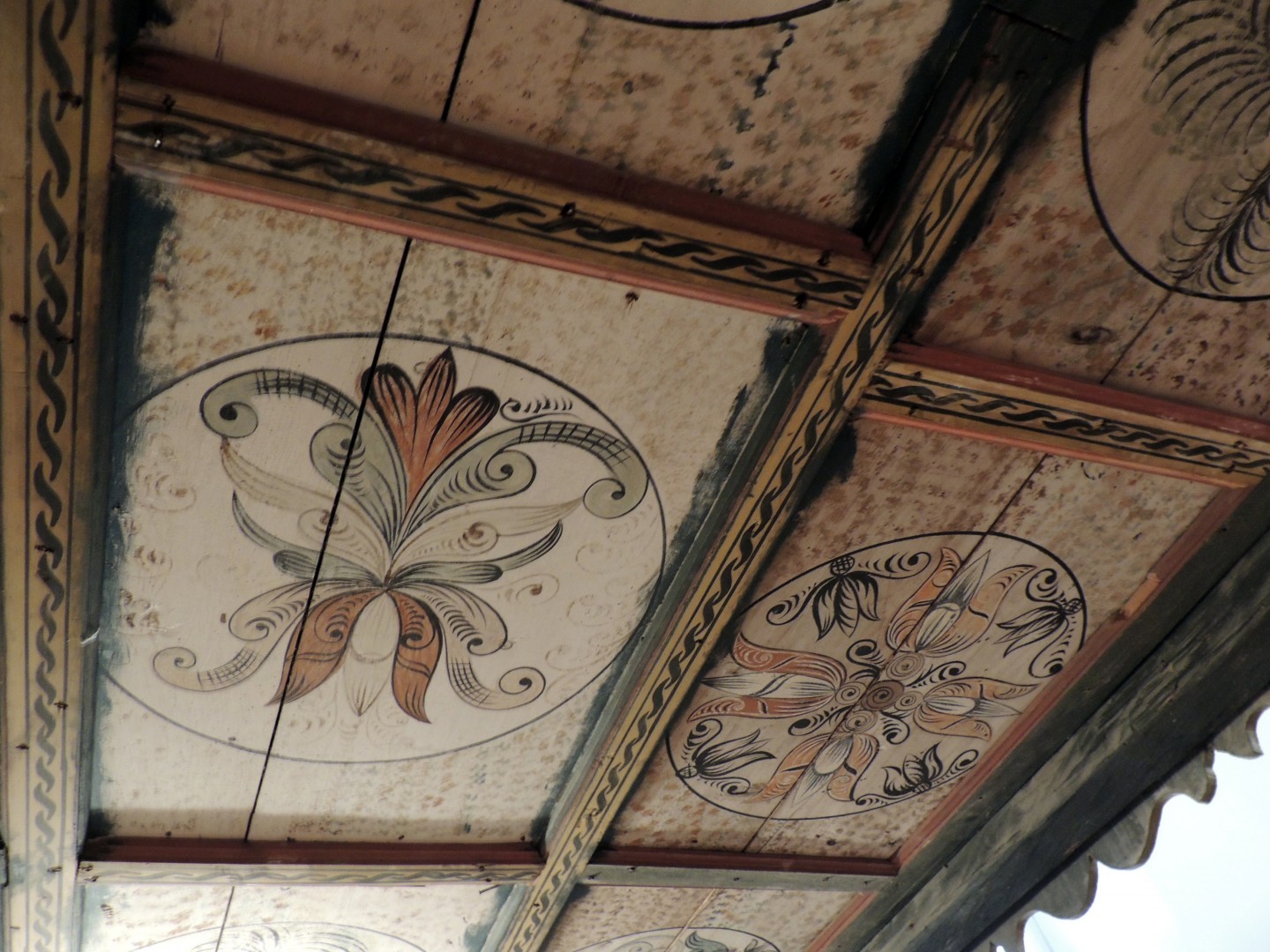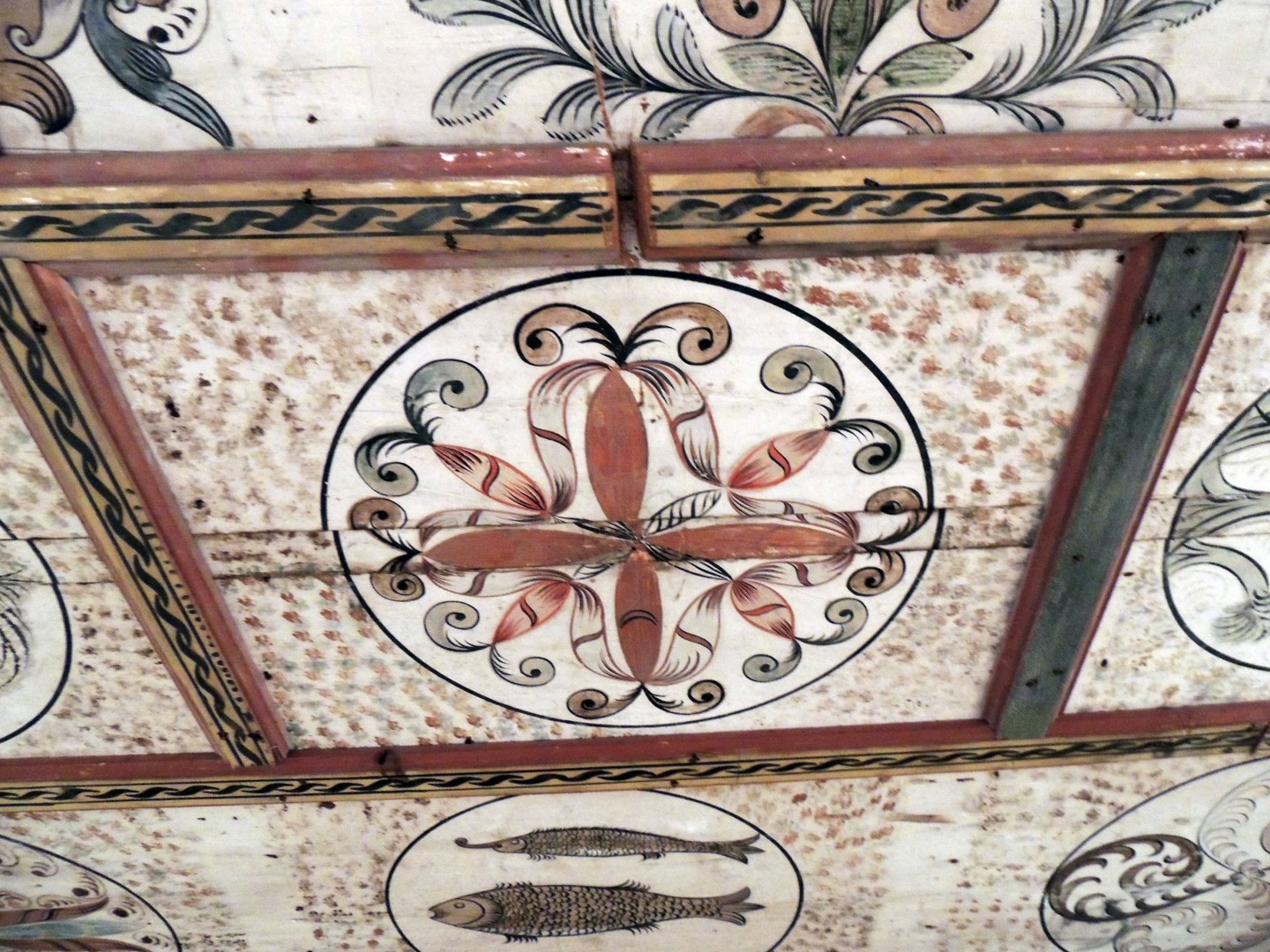 Arany csillagokkal díszített sík famennyezete fehér festésű.
