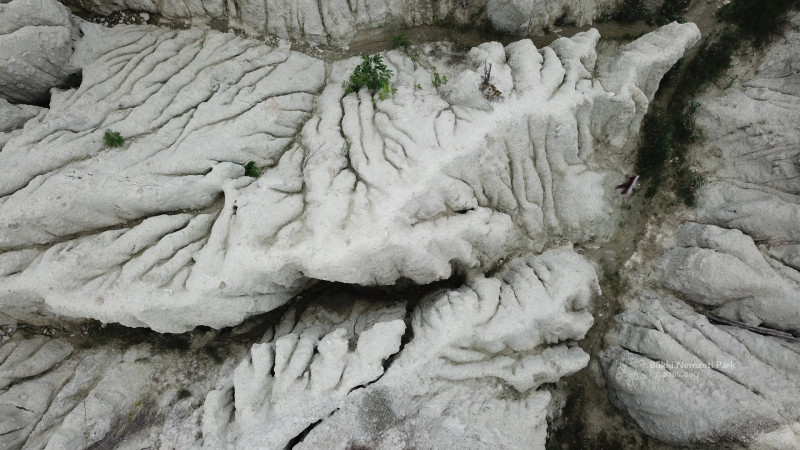 A Mátraszele és Kazár közötti hegygerinc déli oldalán alakult ki a növényzet nélküli, riolittufával borított, mélyen barázdált felszín.