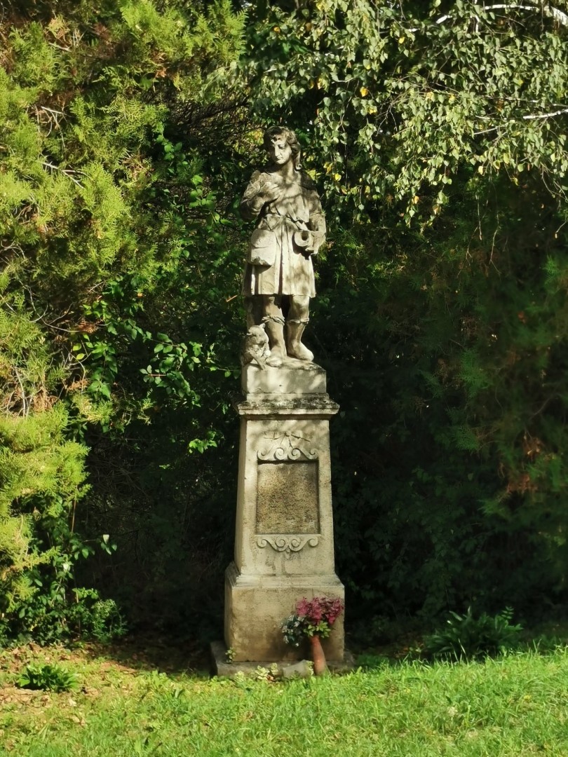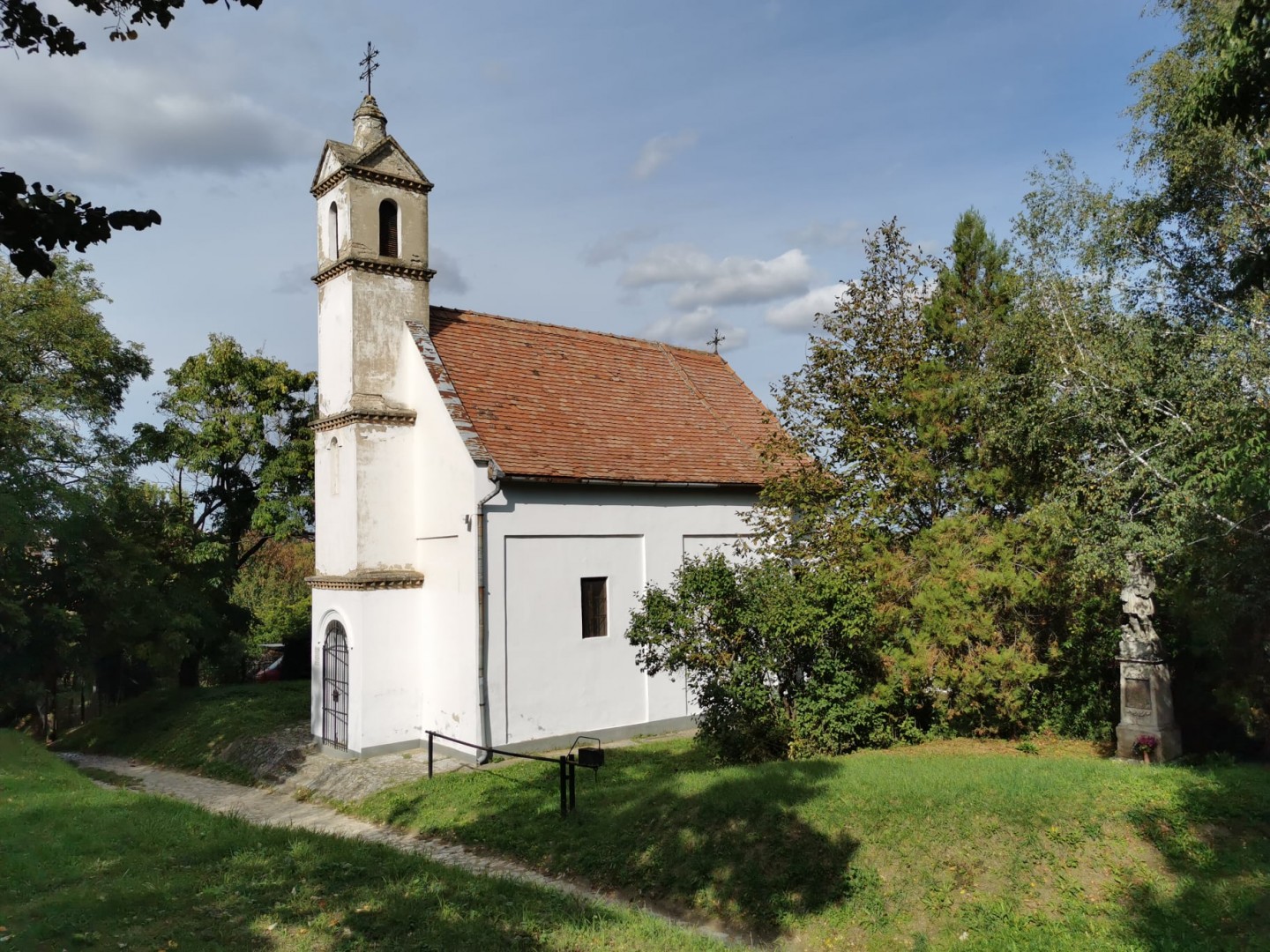 A bejárat a főtengely vonalában nyílik. A hajó mennyezete fiókos dongaboltozatos, a szentélyben félkupola található. Az oltárkép a 18. századból származik. Az épület tágabb környezetében több szobor is látható. Közvetlenül mellette áll Szent Vendel kőszobra. A szemben lévő domboldalon pedig 18. századi mészkő Kálvária-szoborcsoport küzd az időjárás viszontagságaival.